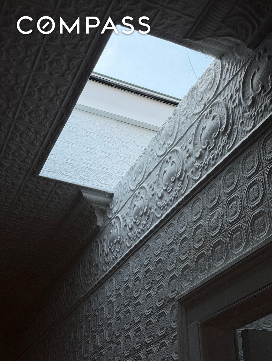 Inside, the home reveals a rich tapestry of original detail: soaring tin ceilings, timeworn hardwood floors, ornate cast iron radiators, and beautifully aged moldings that speak to its past life as a working stable. Historic elements such as original hay doors, transoms, and shutters remain intact, offering both texture and narrative throughout the space. Skylights and oversized windows invite natural light to pour in, illuminating every corner and enhancing the warmth of its preserved finishes.