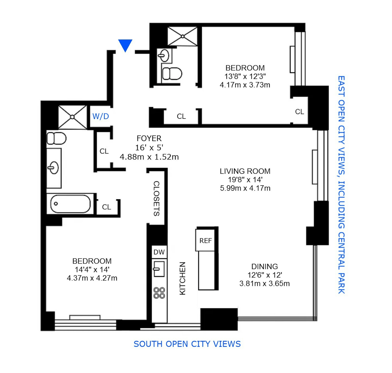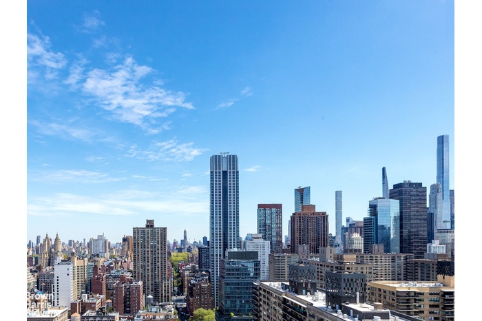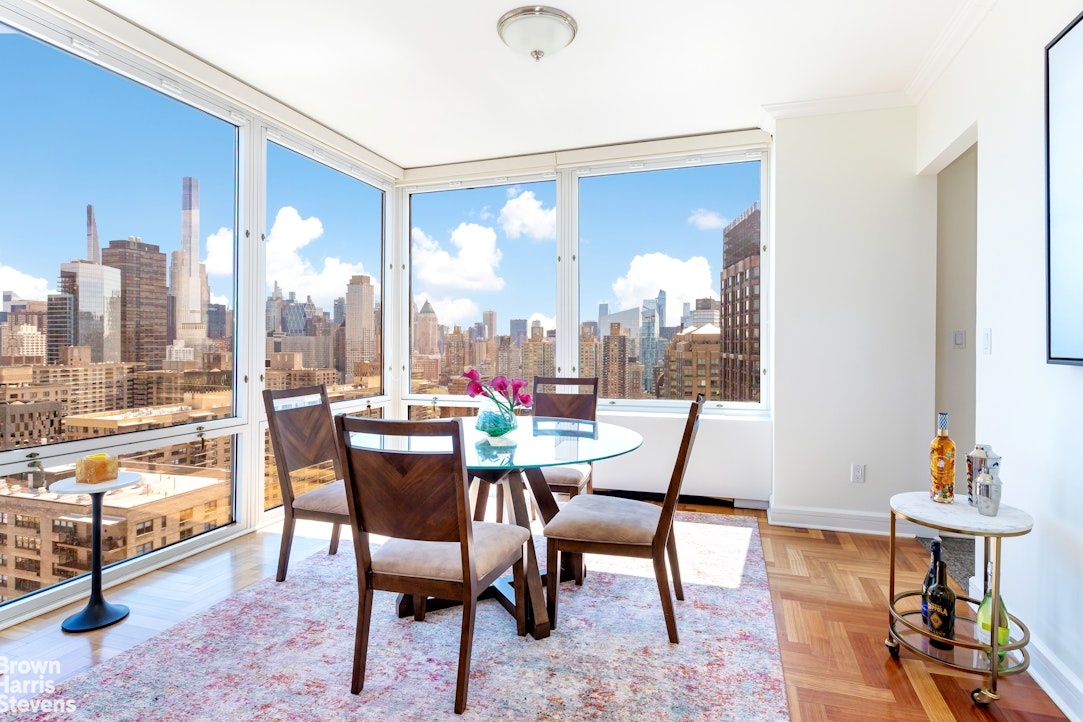 High-Floor Corner Unit with Breathtaking Views!! Split 2-Bedroom, 2-Bathroom Home with Dedicated Dining that can become a 3rd Bedroom! Facing east and south, the home receives stunning natural light through floor-to-ceiling windows and boasts spectacular open city views stretching all the way to Central Park! A side view of the sparkling Hudson River can also be enjoyed from the primary bedroom!