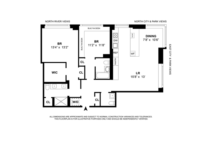 Both bedrooms have great closets, city and side river views and meticulously renovated en-suite bathrooms, including the primary with its double sink, custom floating vanity, towel warmer, and an oversized glass- enclosed shower with mosaic marble and a rainfall showerhead.