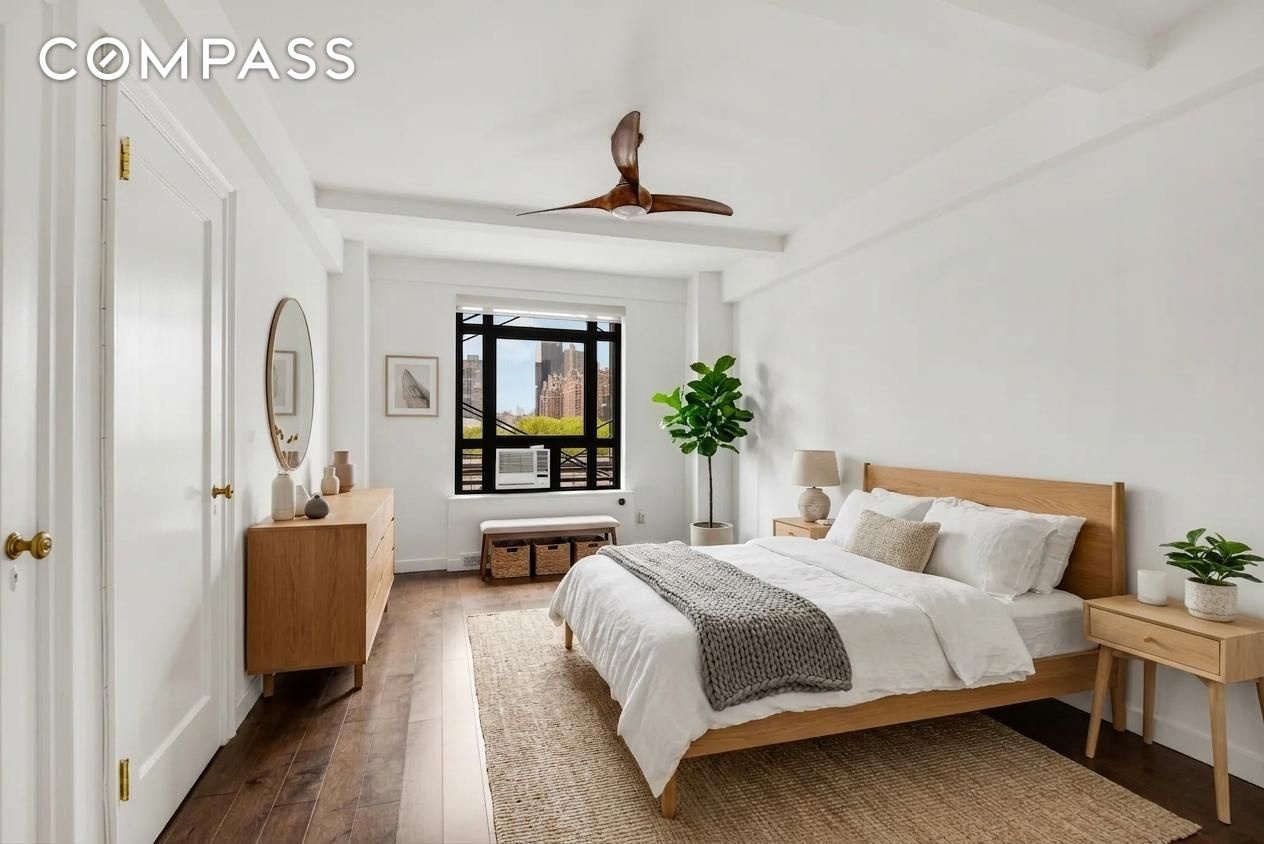 This one-bedroom, one-bathroom residence enjoys open southern exposures and charming river views, bringing in natural light throughout the day. The well-proportioned layout includes a windowed kitchen and generous closet space, offering both functionality and comfort.