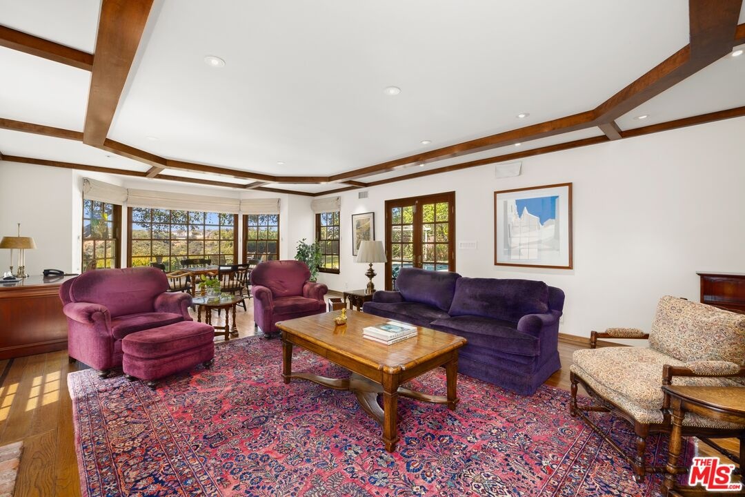 Situated on a large lot with sweeping views. Two story traditional home with perfect flow. Tons of natural light. Abundance of rooms and spaces for entertaining. Great living room with fireplace, large den with fireplace, study and much more. Generous size rooms. Great storage and office space. Entertainers backyard with pool, hot tub and views. In the award winning Roscomare Rd Elementary and close to all great private schools on the Mulholland corridor. Easy access to 405 and 101 freeways.
