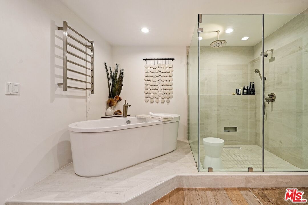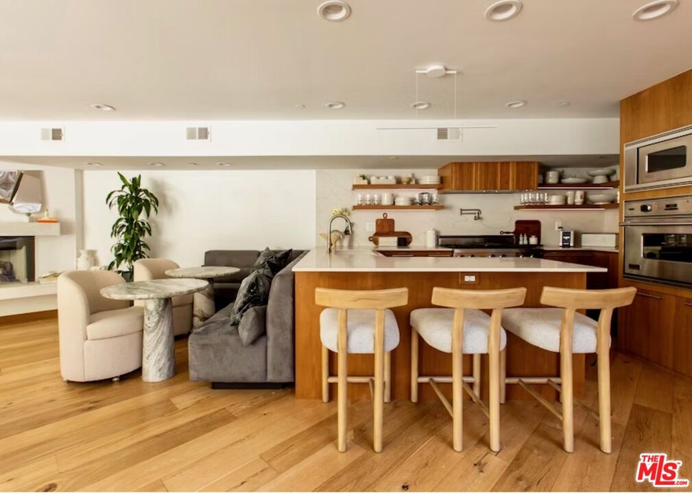 VENICE. BROOKS AVENUE LOFTS. $2,295,000 Five minutes to Abbot Kinney, Erewhon around the corner, the beach a short jaunt west. You won't need your car here. That's the neighborhood. Inside Brooks Avenue Lofts, an intimate six-unit building where everything feels intentional, this 2,480 sq ft townhome was completely reimagined in 2021 with over $200K in upgrades. Three bedrooms, three baths, move-in ready. The main floor opens wide with French oak, floor-to-ceiling windows, sun-drenched and built for living. The kitchen has a Viking six-burner range, Cambria quartz, pot-filler, custom LED shelving, and a farmhouse sink. A bonus room with roll-up door opens to a private terrace. That's where people gravitate. The primary suite takes the entire second floor with motorized shades on massive windows, a fireplace, and a private balcony. The ensuite is spa-quality: dual Caesarstone vanities, Axor fixtures, jetted Duravit tub, dual showerheads. Your own retreat. Third floor: two bedrooms with custom Italian Murphy beds, Jack-and-Jill bath with heated towel rack, slate floors, frameless glass shower. Outside, there's a jasmine-scented patio with a Lynx BBQ and a shared courtyard with built-in fireplace and grill for gatherings. Real outdoor living. Systems include a new Navien tankless water heater, two-car garage with direct access and EV charging, plus ample storage. Motorized shades throughout the primary floor. The HOA is $800/month and covers building insurance, exterior maintenance, roofing, landscaping, termite protection, elevator, and gate systems. True lock-and-leave.