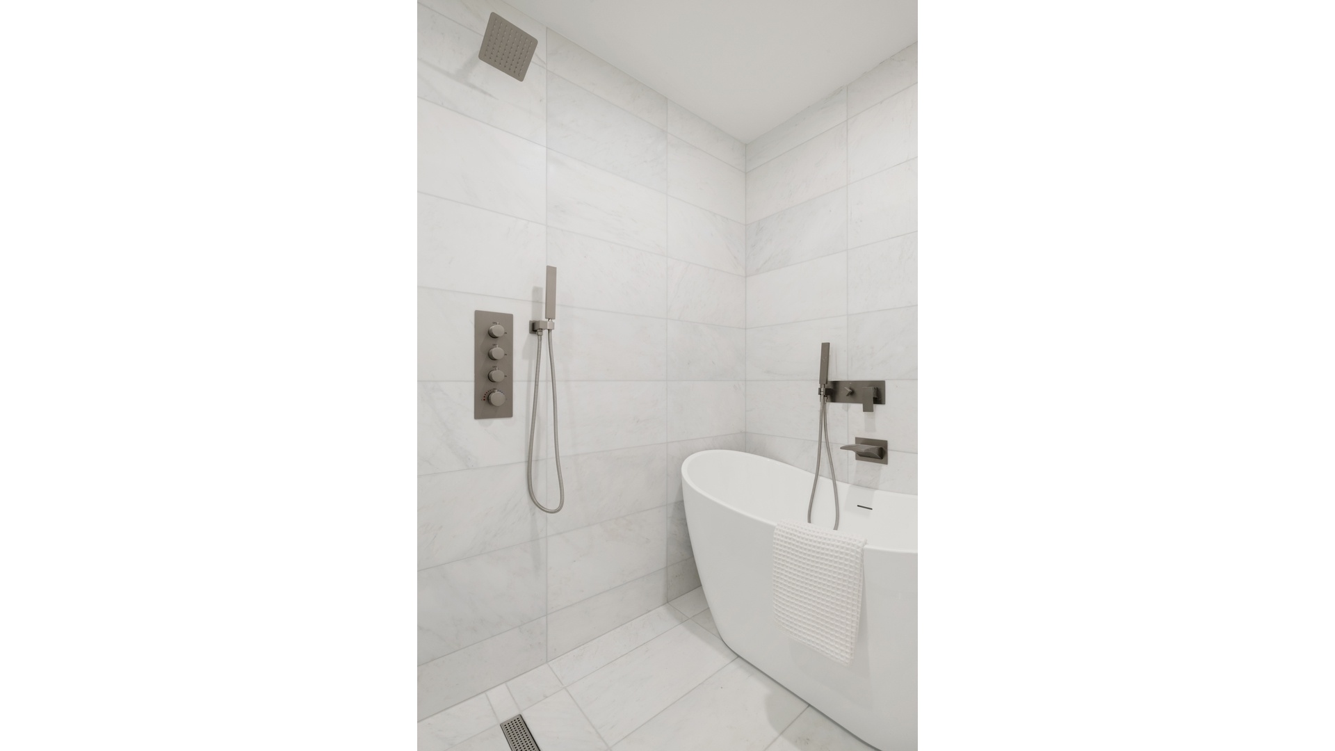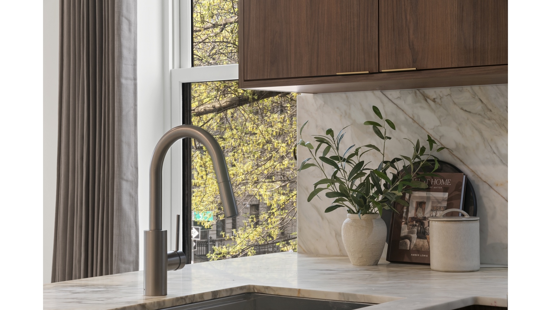 The open-plan living and dining areas are designed for both effortless entertaining and comfortable everyday living, anchored by a thoughtfully appointed kitchen with custom cabinetry, ample storage and a suite of premium appliances, including a Bertazzoni induction range. A cohesive palette of high-end materials and clean lines carries throughout, creating a sense of understated sophistication.