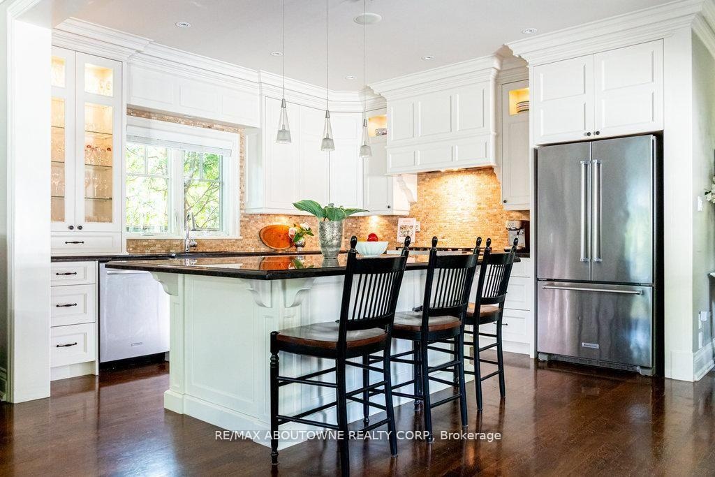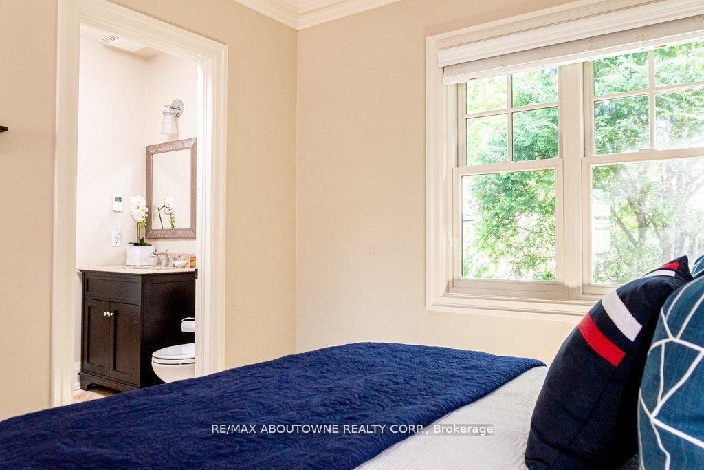 Welcome to 44 Head St - an exceptional home in the heart of Oakville- steps from Kerr Village & downtown. Enjoy walkable access to local shops, dining & the lakefront-the perfect blend of convenience & tranquility. Offering almost 2200 sq ft plus fully finished basement ( 1015 sq ft),this remarkable residence offers timeless charm & modern functionality. Set behind pretty gardens, the Dark Slate wood siding & crisp white trim frame an inviting front porch-perfect for morning coffee or evening wine. Inside, 9' ceilings, hardwood floors, crown moulding & high baseboards create a refined, elevated feel. The entertainer's kitchen showcases granite countertops, a large island, professional-grade appliances & generous storage, seamlessly flowing into the bright, open-concept living & dining areas. A cozy gas fireplace with custom millwork adds warmth, while French doors lead to the beautifully landscaped rear garden-perfect for relaxing or hosting outdoors. A versatile room on the main floor can serve as your personal office or den; it could also be transformed into a separate dining room if desired. Upstairs are 3 spacious bedrooms, each with ensuites with heated floors & walk-in closets . The lower level (9' ceilings) includes a spacious family room plus 4thbedroom, 3pc bath & large laundry room. Storage is no issue in this home with the many custom built-in closets & cabinets. A detached garage with EV charger features a rare basement for even more storage! Plus there is parking for 6 cars on the extra long driveway. A fully fenced private rear yard, & unbeatable walkability to parks, shops, cafes & the waterfront make this turnkey property a rare offering. Meticulously maintained by the current owners, recent updates include powder room renovation (2024), driveway resurfaced (2024), exterior newly stained(2024) & insulation upgraded to R60 (2025). Ideal for empty nesters, downsizers & families. Don't miss this opportunity to experience Oakville's historic charm.
