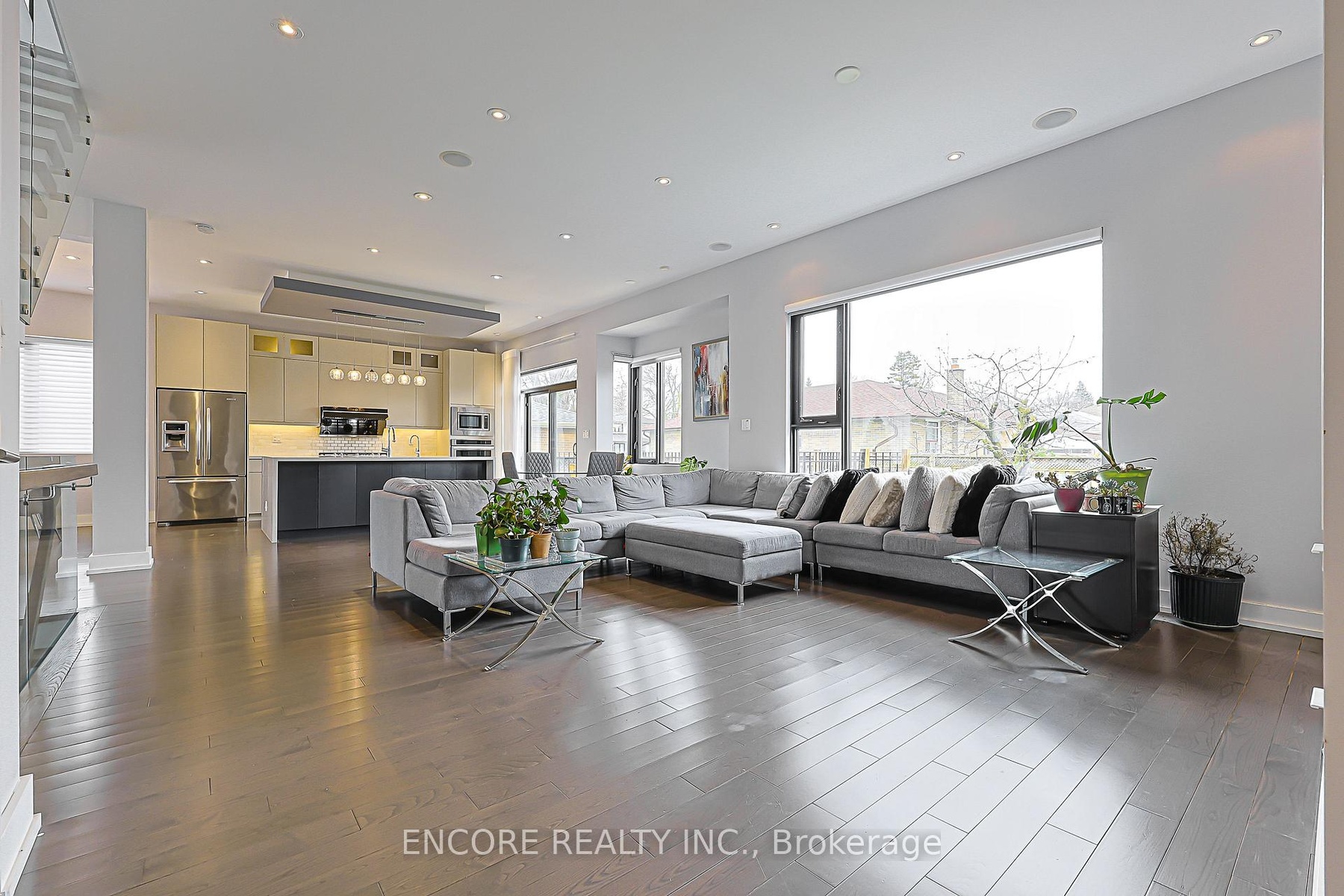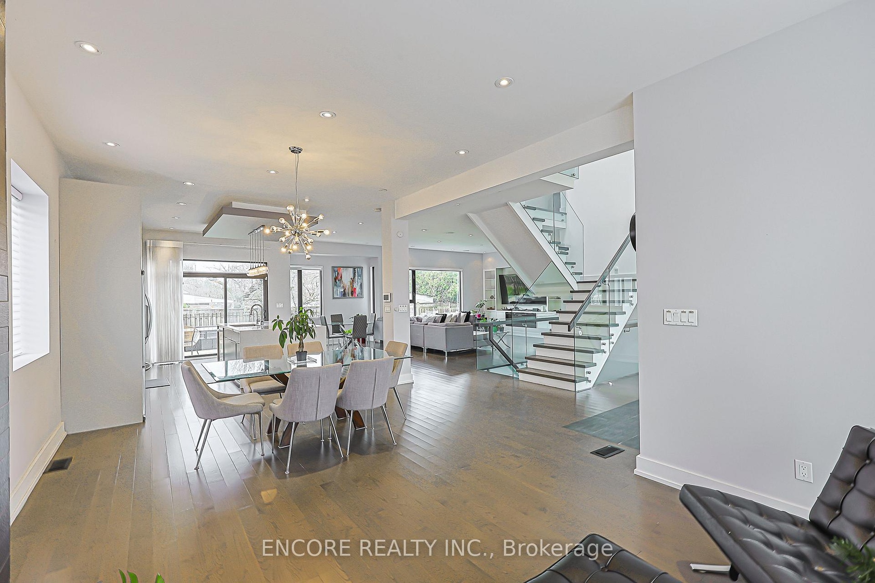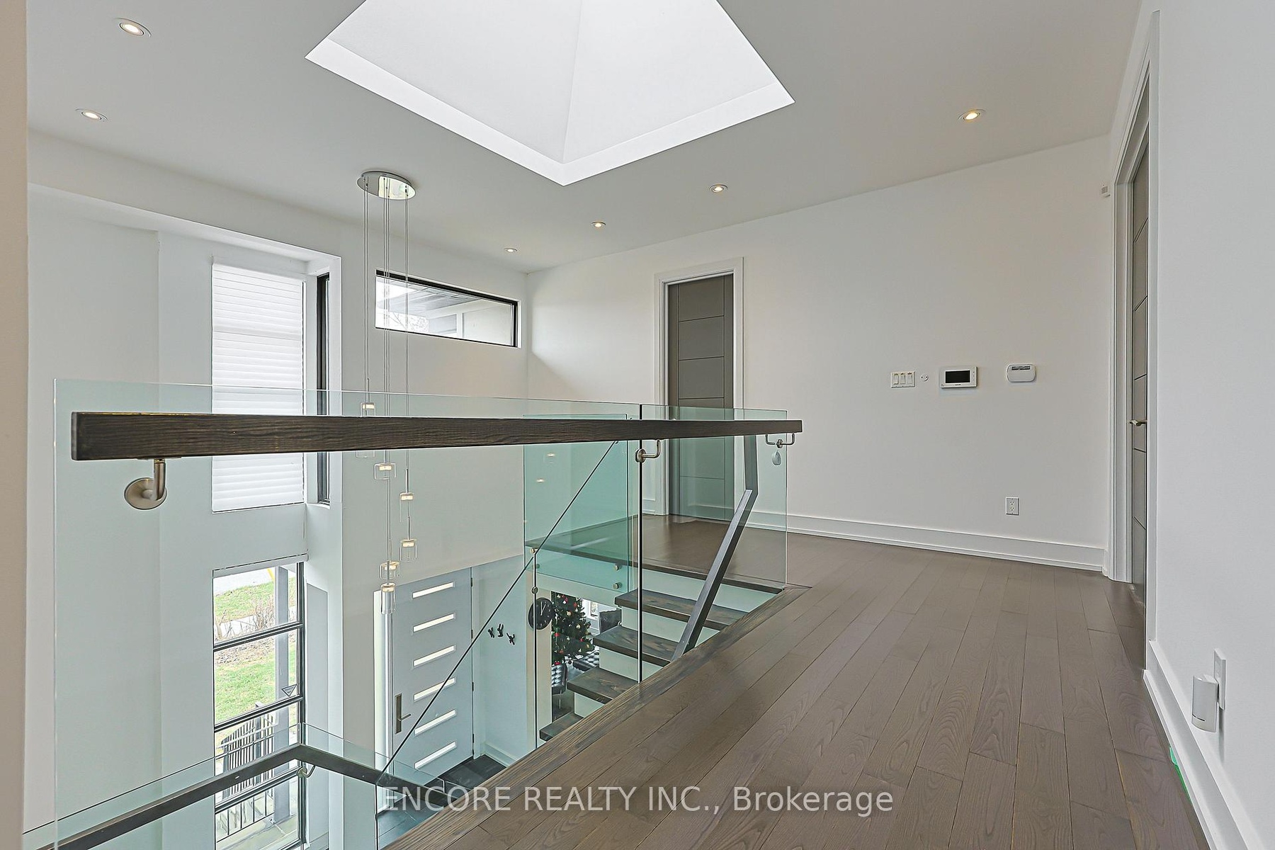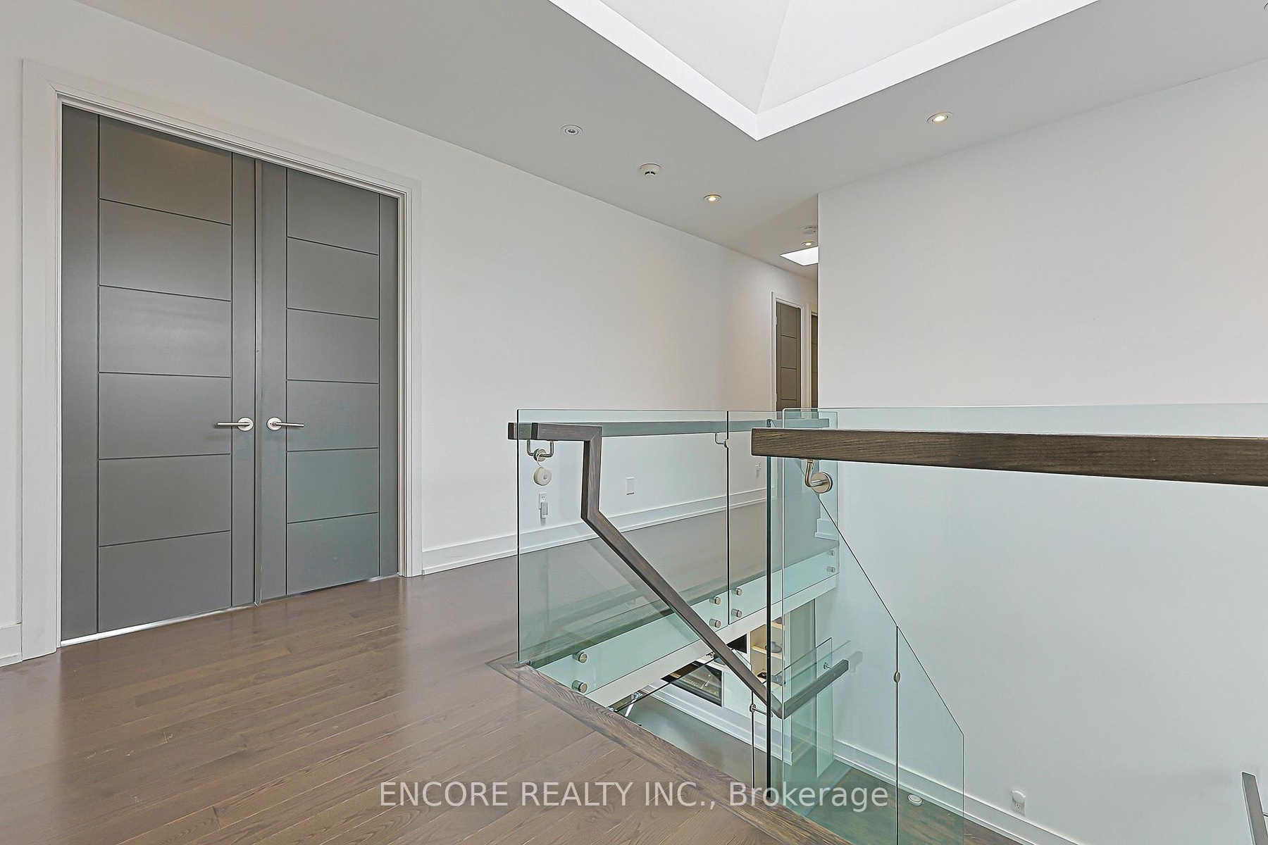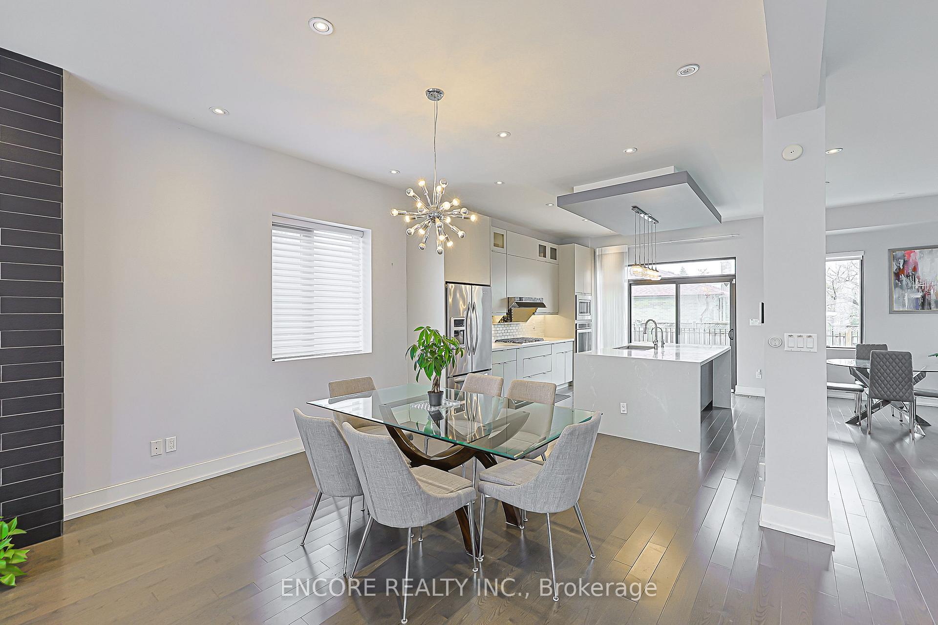 Modern. Elegant. Irreplaceable. This unique custom-built gem in the heart of Pleasant View offers unparalleled sophistication. An impressive double-height foyer leads to a sun-drenched open-concept layout featuring 10ft ceilings and floor-to-ceiling aluminum windows. The gourmet chef's kitchen flows seamlessly to an oversized deck-perfect for alfresco dining. Highlights include a striking glass staircase, dual skylights, and premium Hunter Douglas auto-blinds. Featuring a rare 2nd-floor laundry plus a finished walk-up basement with wet bar and rough-in laundry. Stunning stone & cedar facade with a double garage and stone driveway. Steps to top-rated schools, parks, and easy Hwy 404/401 access.