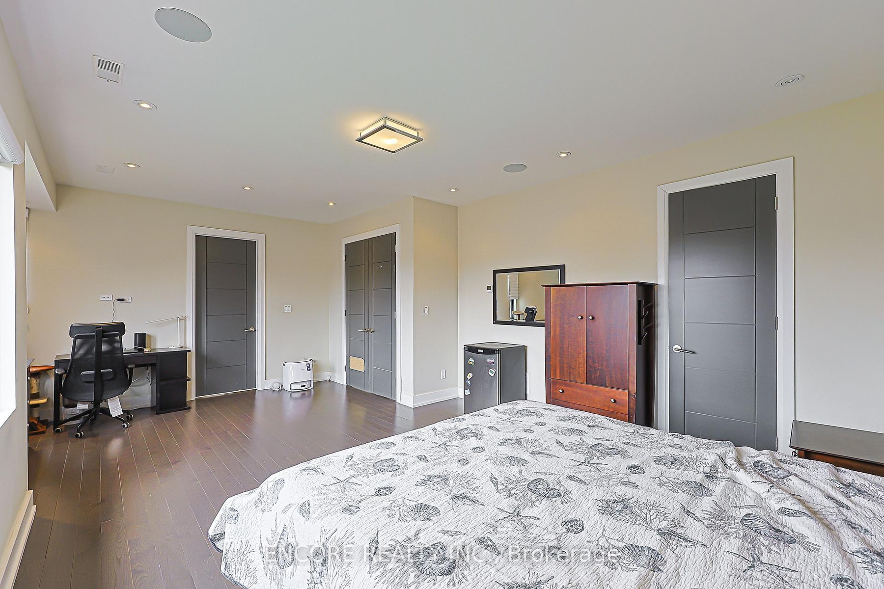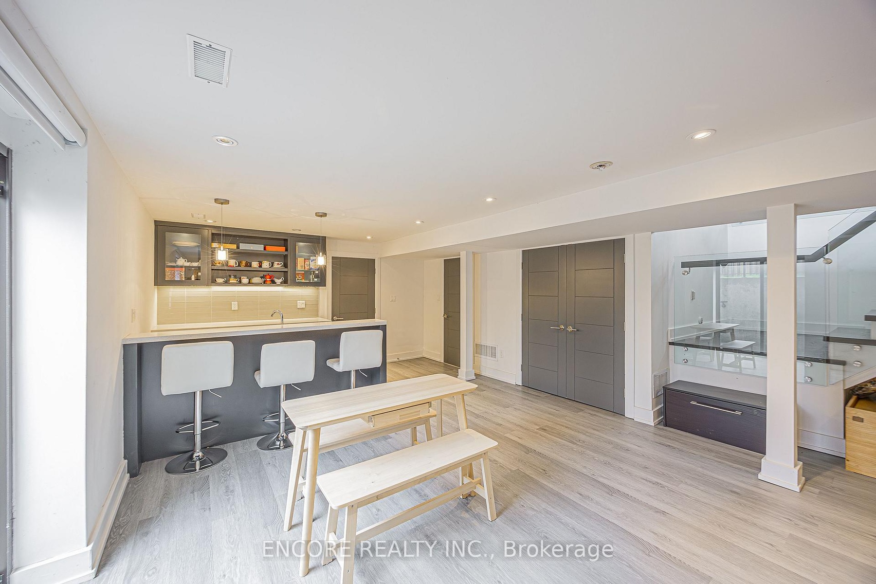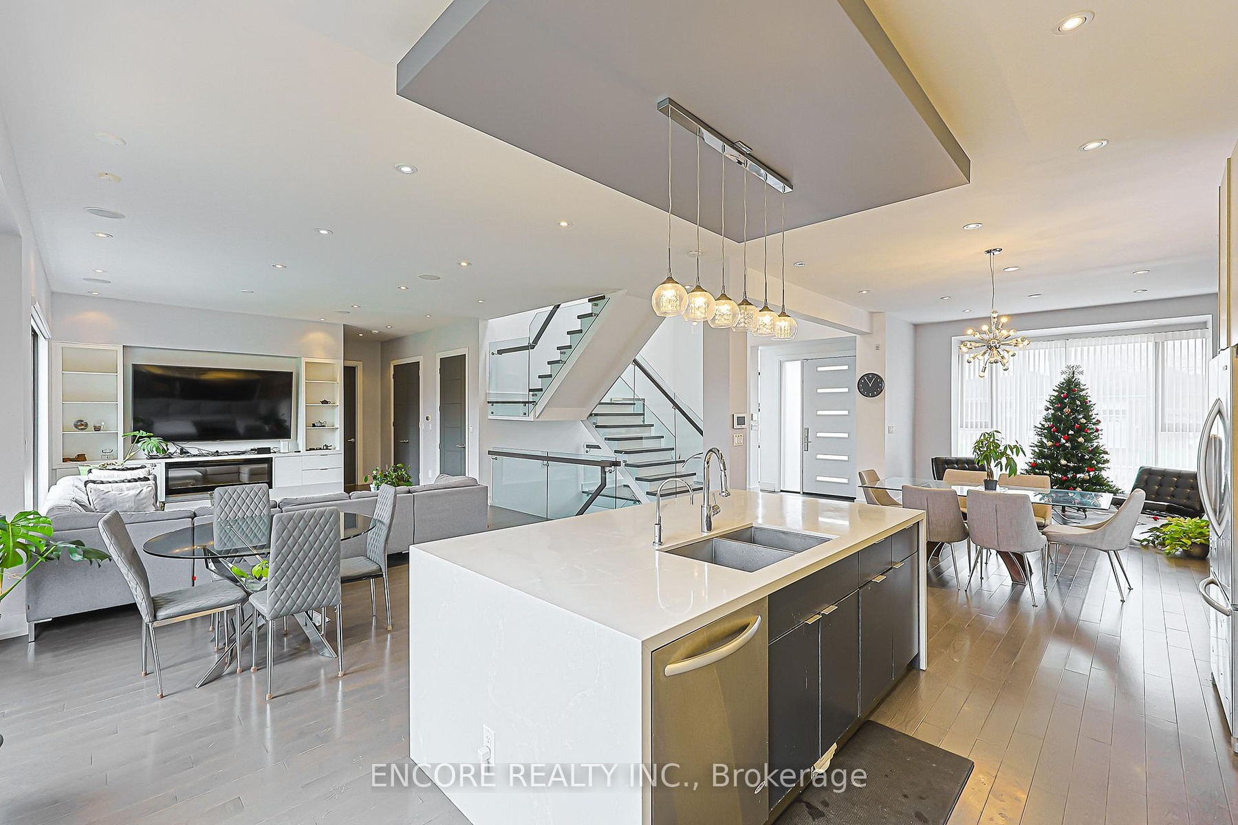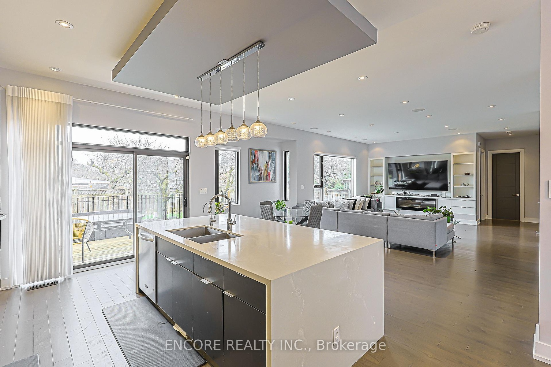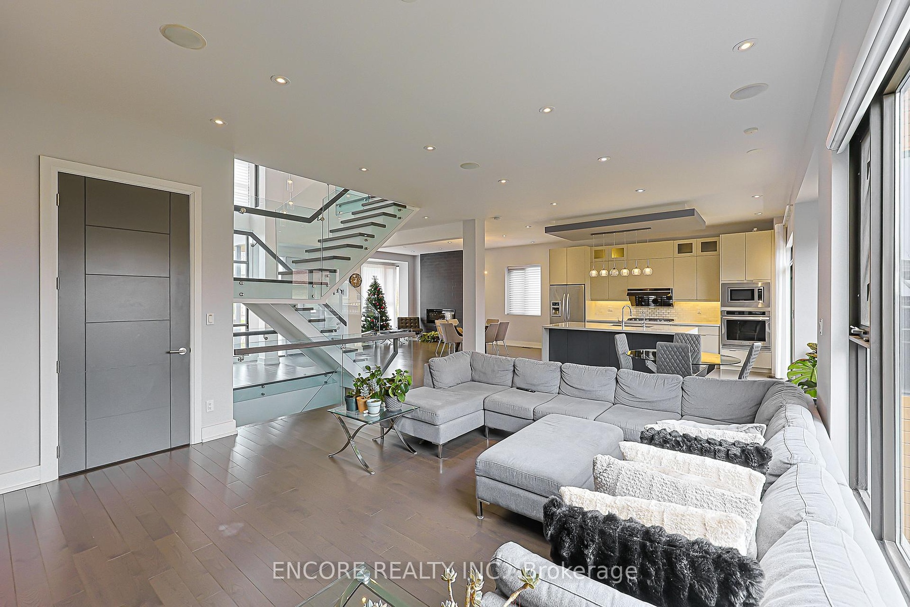 Modern. Elegant. Irreplaceable. This unique custom-built gem in the heart of Pleasant View offers unparalleled sophistication. An impressive double-height foyer leads to a sun-drenched open-concept layout featuring 10ft ceilings and floor-to-ceiling aluminum windows. The gourmet chef's kitchen flows seamlessly to an oversized deck-perfect for alfresco dining. Highlights include a striking glass staircase, dual skylights, and premium Hunter Douglas auto-blinds. Featuring a rare 2nd-floor laundry plus a finished walk-up basement with wet bar and rough-in laundry. Stunning stone & cedar facade with a double garage and stone driveway. Steps to top-rated schools, parks, and easy Hwy 404/401 access.