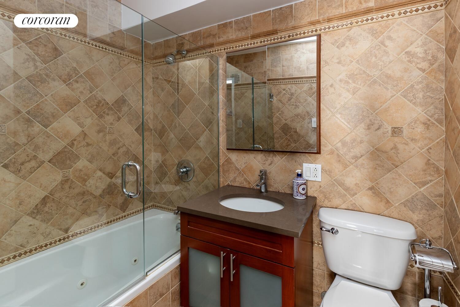 The bathroom with attention to detail, has European ceramic tiles and it offers a deep jacuzzi tub !
