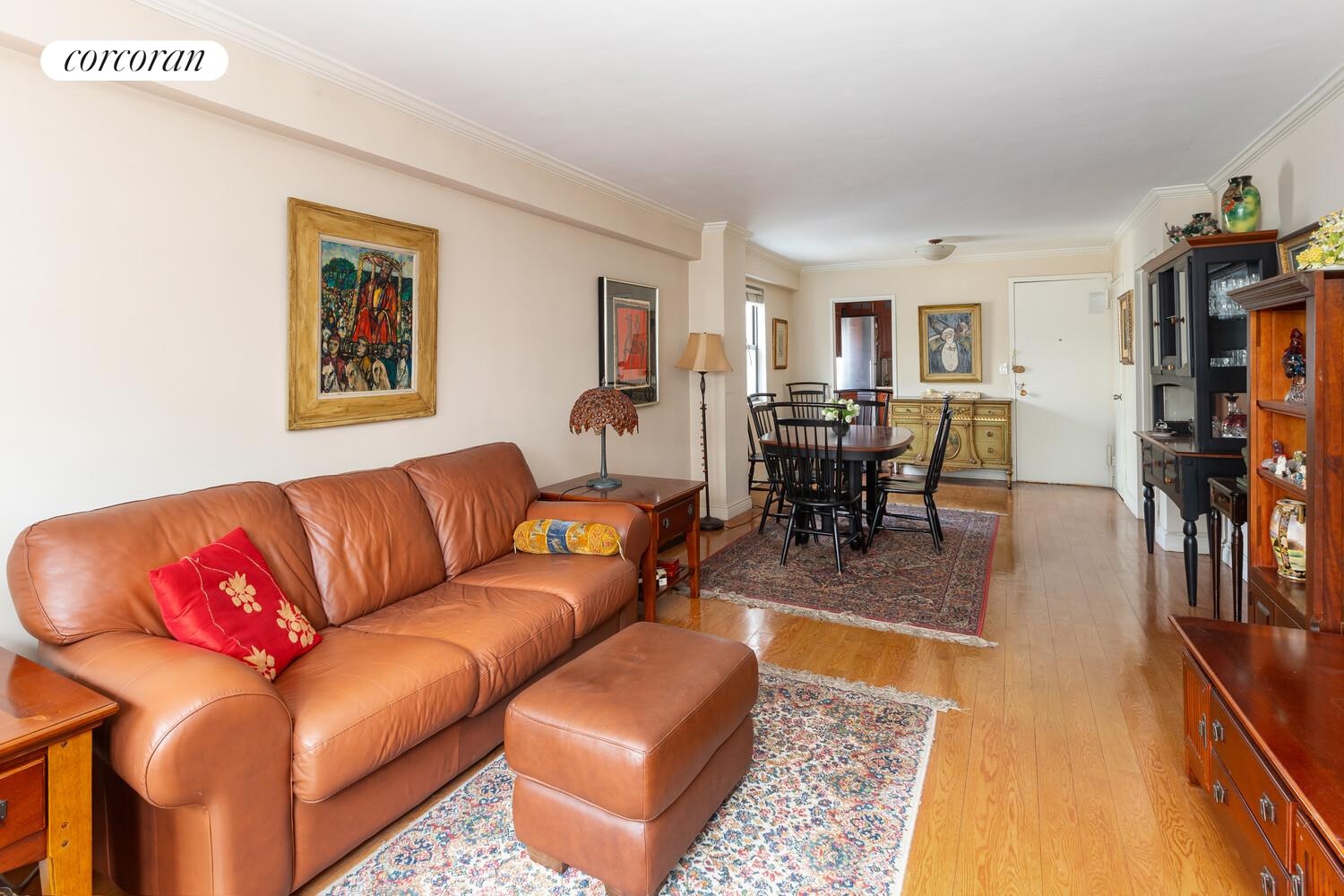 Upon entering, the elegant living room/dining room provides wonderful natural light along 26.6 x12.9 feet of southern exposure, best for relaxation and entertaining.