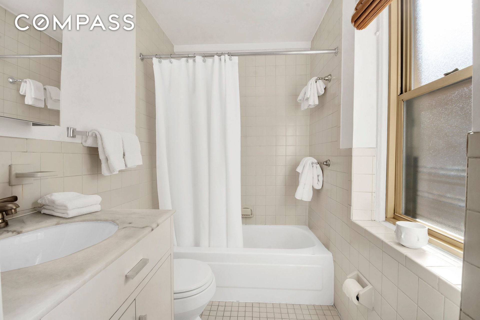 The generously sized, quiet and bright bedroom is located on the corner, with north and west exposures. There is plenty of space for a king size bed, as well as any other bedroom furniture and/or a home office.