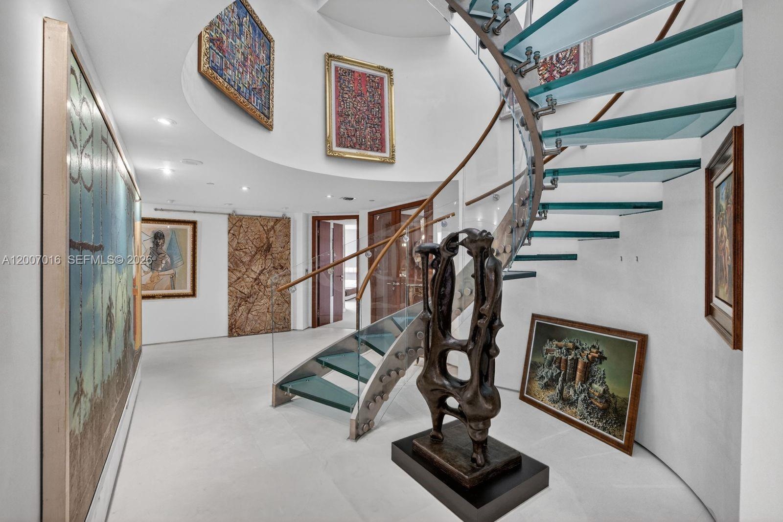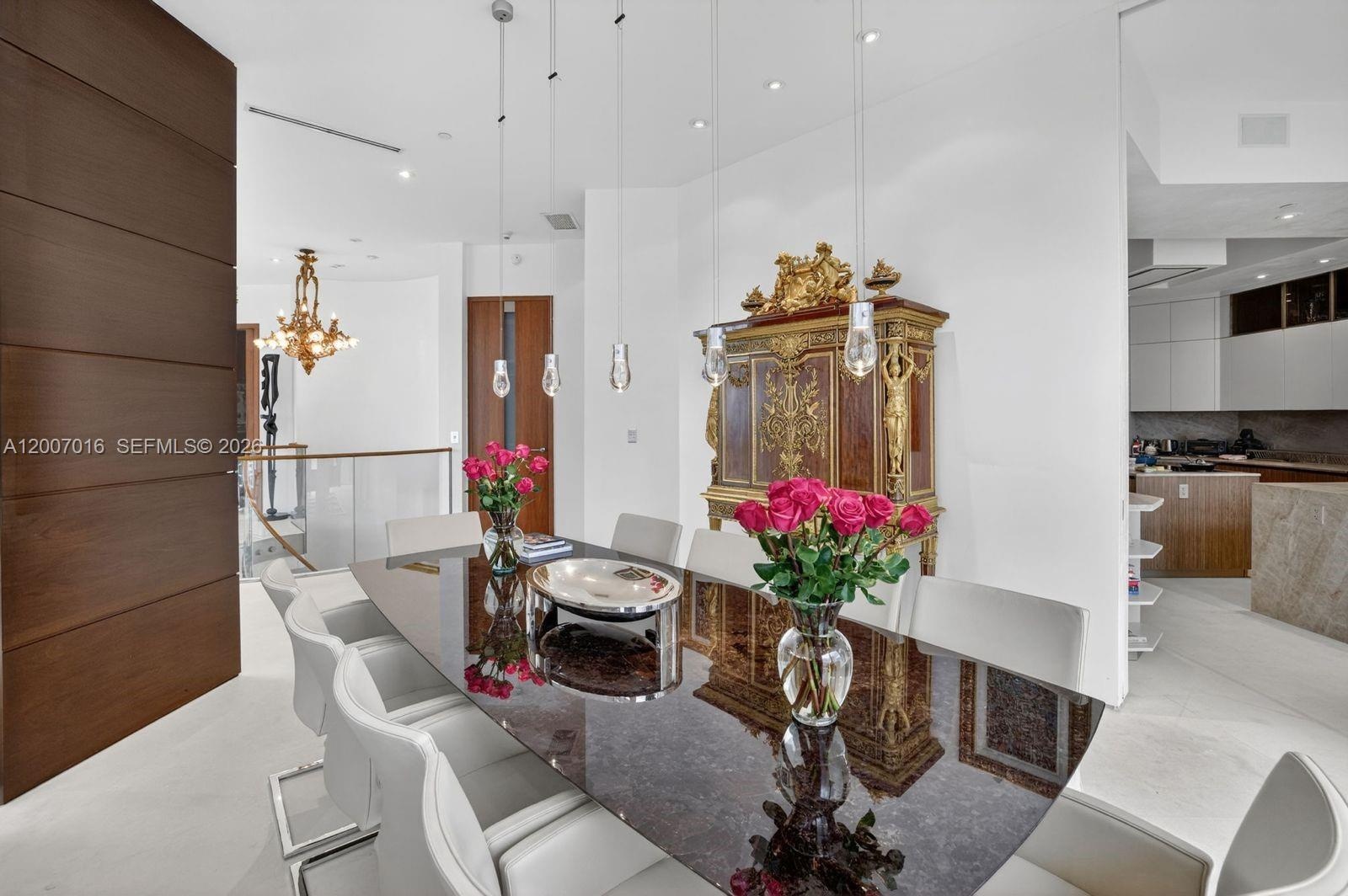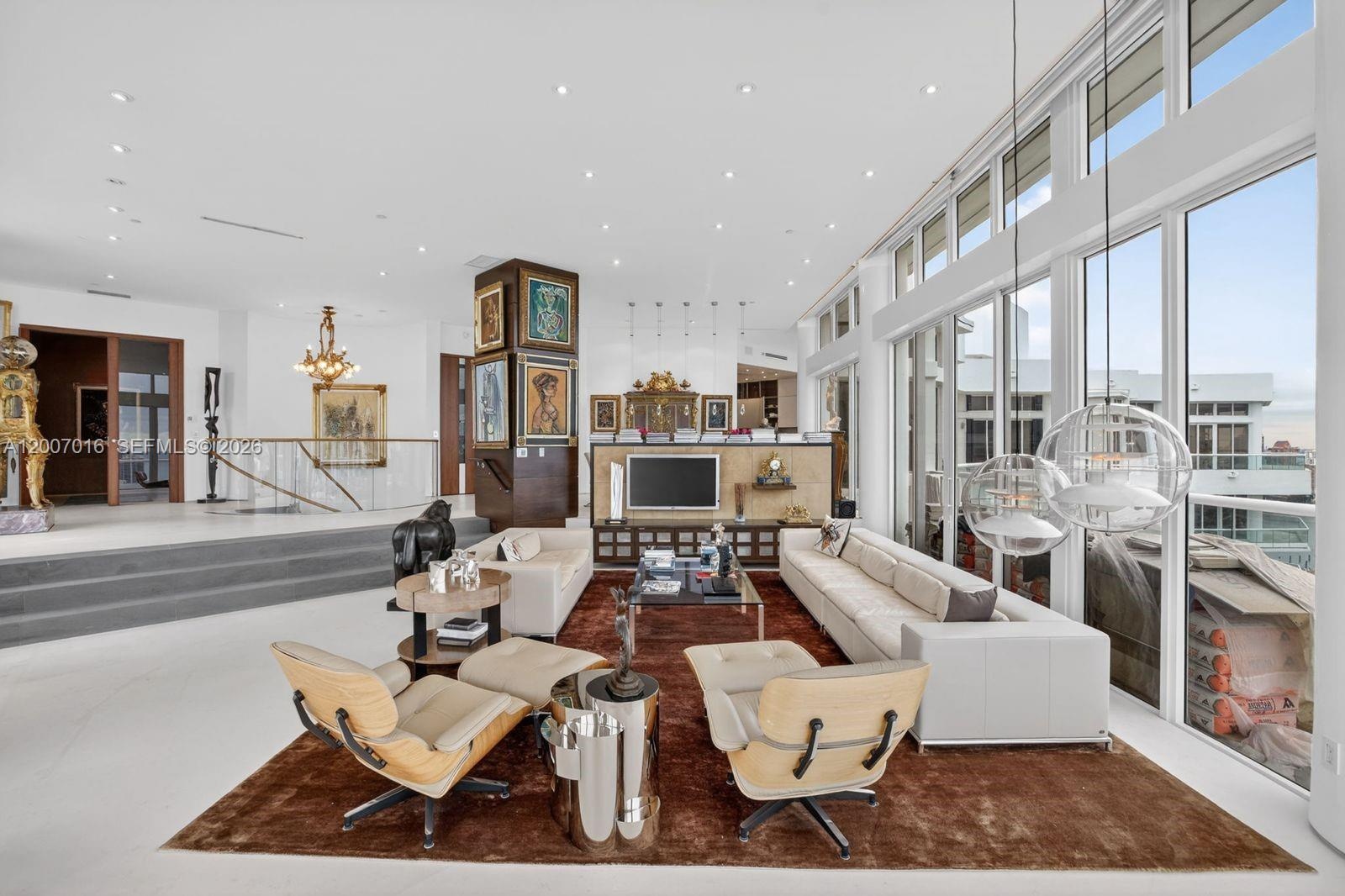 A TRUE “WOW” RESIDENCE IN THE SKY — WILLIAMS ISLAND PENTHOUSE #1. From the moment you step inside, the reaction is inevitable: WOW. This exceptionally, one of a kind, Williams Island penthouse is a statement of scale, design, and prestige—offering 5 bedrooms, 4.5 bathrooms, and soaring 14-foot ceilings that amplify light, volume, and breathtaking views. Enjoy uninterrupted, full panoramic vistas from the Atlantic Ocean to Bal Harbour, to Miami Beach and to the glittering downtown Miami skyline—an ever-changing backdrop of lights, from sunrise to sunsets. Limestone flooring flows seamlessly throughout, complemented by exquisite custom wood doors and the convenience of a private in-residence elevator. The chef’s kitchen is a true showpiece—fully renovated with top-of-the-line Gaggenau appliances, sleek European cabinetry, and exquisite Taj Mahal quartzite countertops, blending modern precision with timeless luxury. Step outside to your private rooftop terrace—an extraordinary, decorator-ready canvas ideal for a summer kitchen, sunset lounge, or ultimate entertaining space under the Miami sky. The primary suite is spectacular, featuring a spa-inspired bathroom adorned with onyx accents, backlit vanities, premium finishes, and an oversized rainfall shower with ocean views. IMPACT GLASS THROUGHOUT.