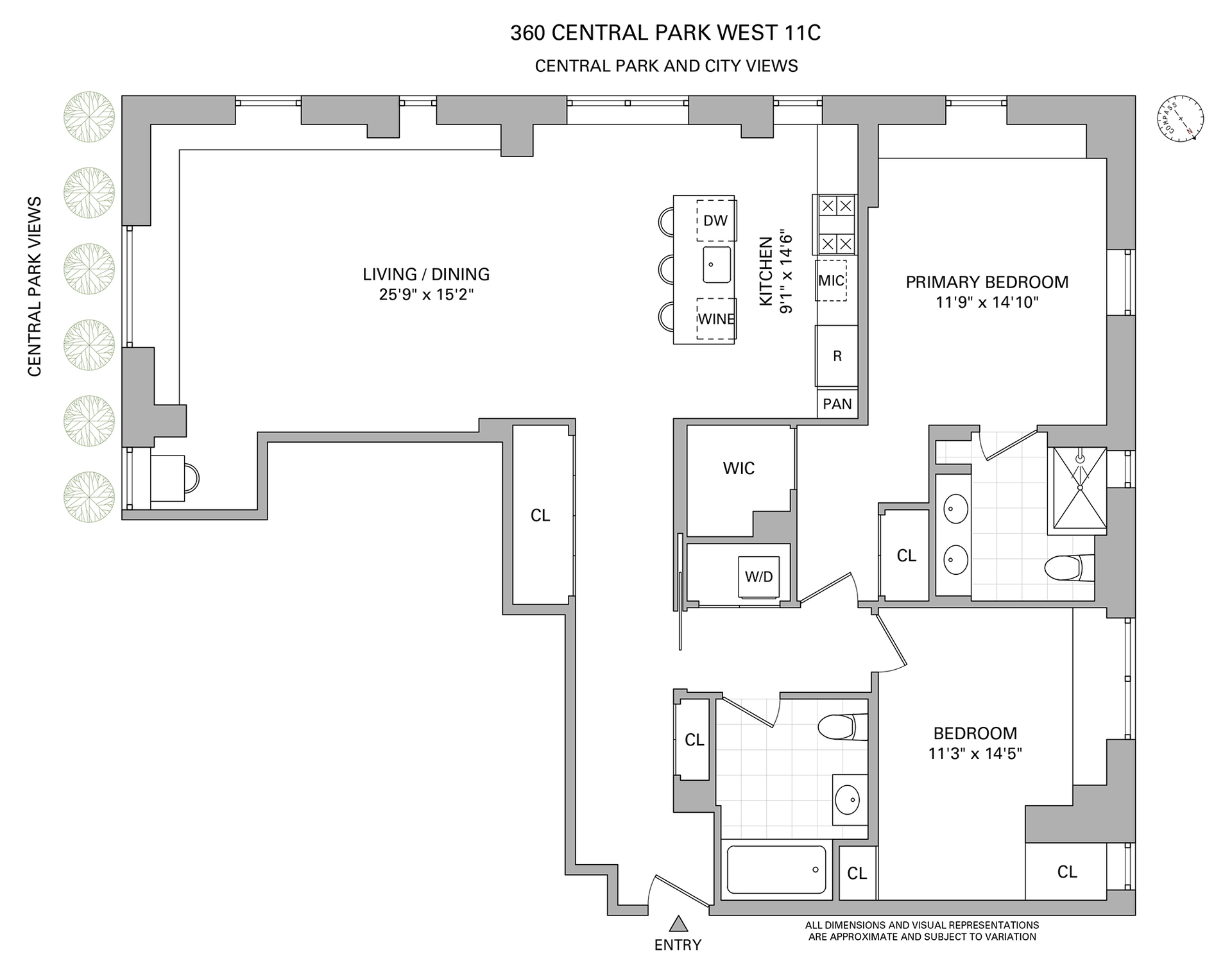 Park Views, Abundant Light, and Thoughtful Design on Central Park West Perched on the 11th floor at 360 Central Park West, this 2 bedroom, 2 bathroom residence offers a perfect ...