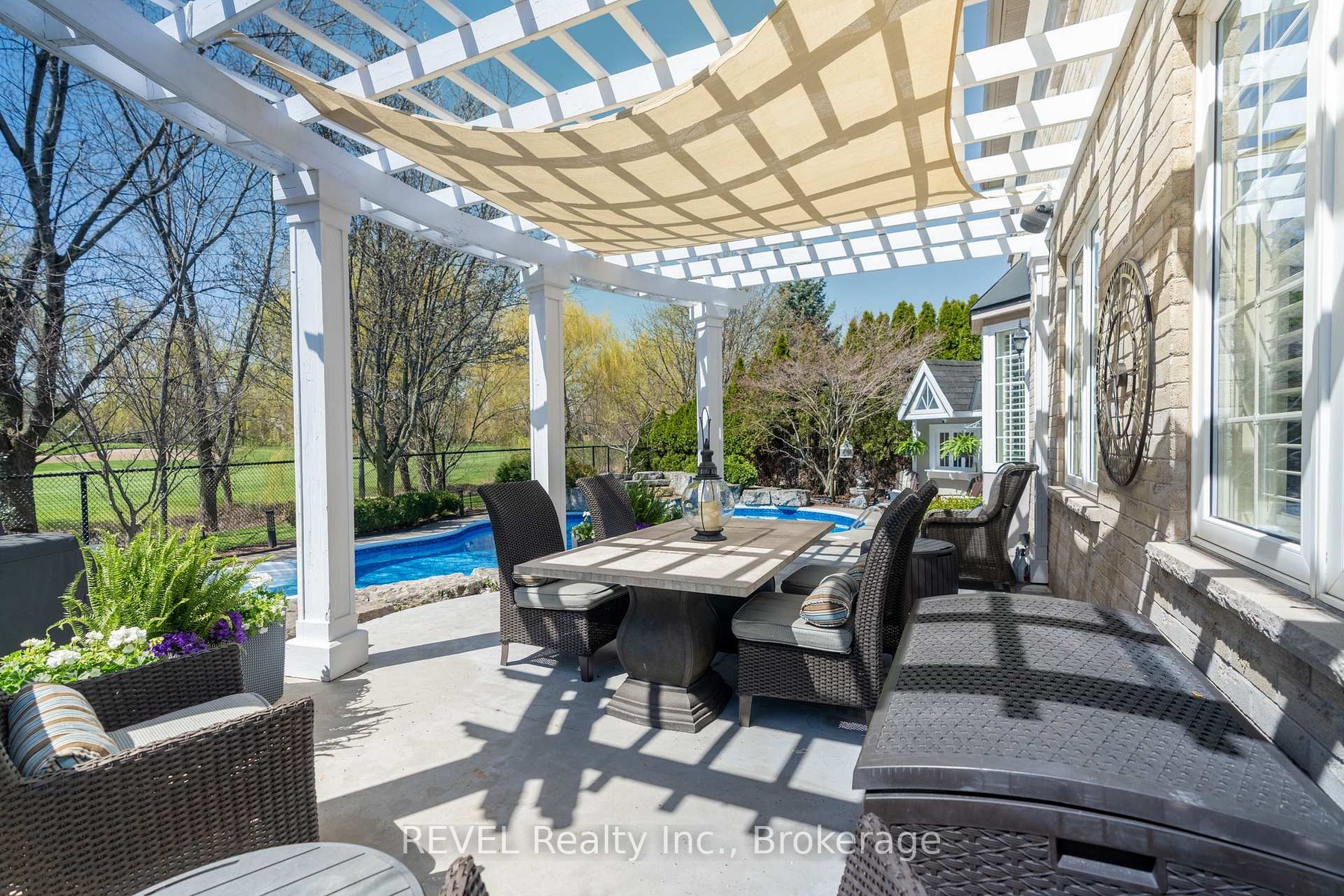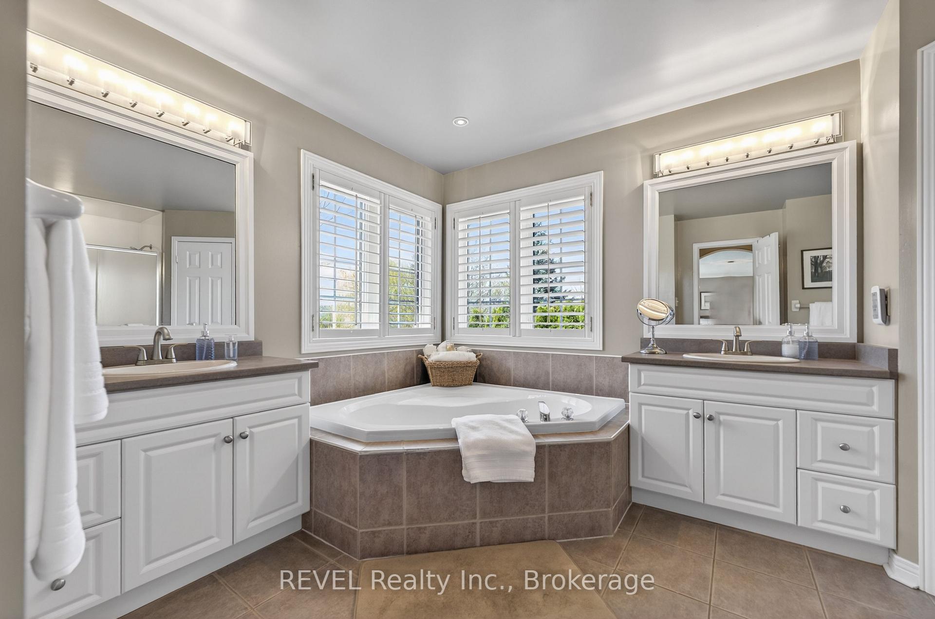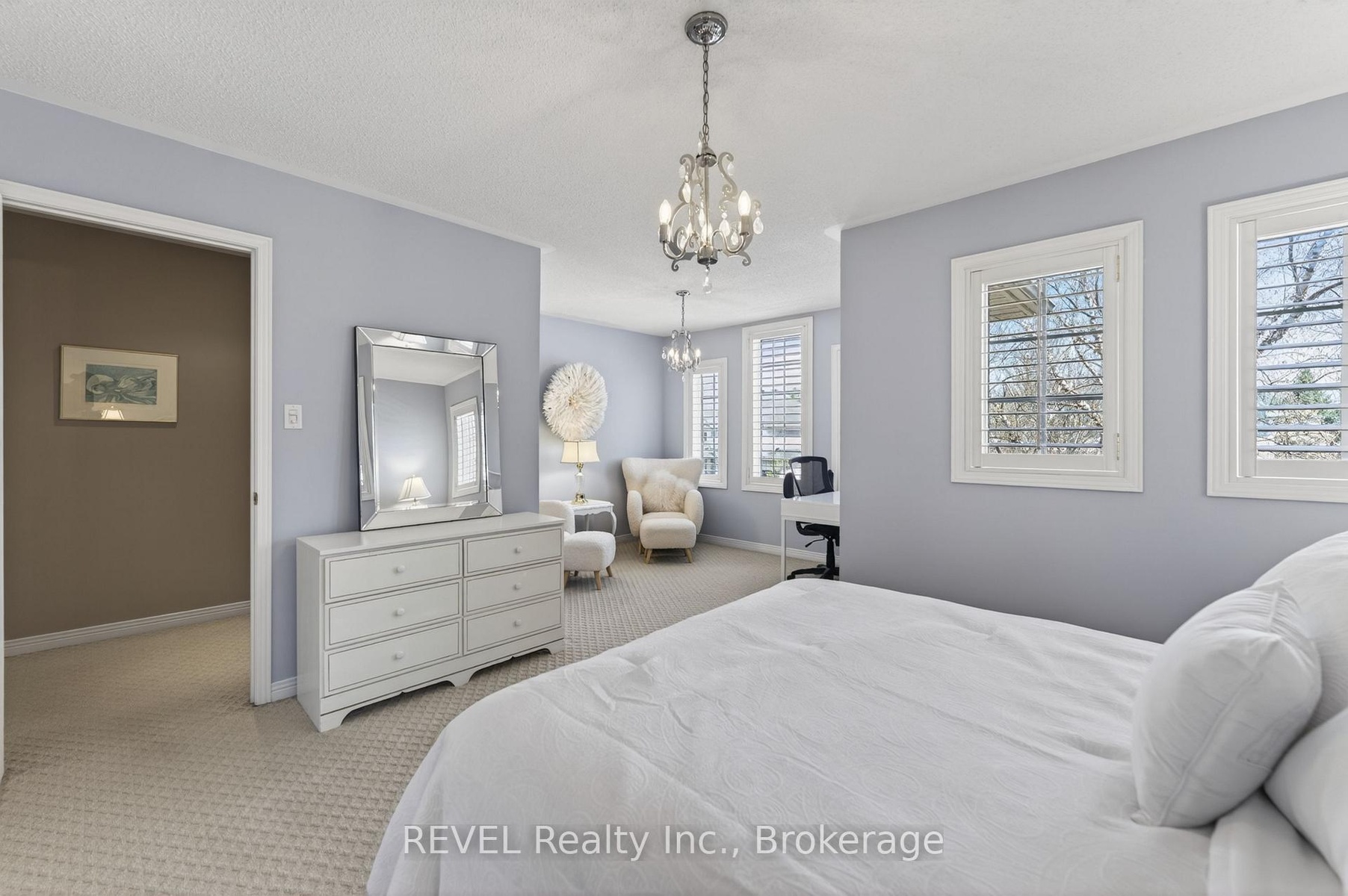 Welcome to 4266 Clubview Drive in Burlington, an exceptional home offering 3,878 sq ft above grade, set in a quiet, highly sought-after area backing directly onto Millcroft Golf Course and just a 5-minute walk to Charles Beaudoin Public School. This beautifully landscaped property features a stunning 18x34 saltwater in-ground pool with concrete surround, pergola, garden pool shed, gas BBQ line, and a covered front patio, creating the perfect outdoor retreat. Inside, the main floor showcases 10' ceilings, hardwood flooring, California wood shutters, crown molding, and a built-in sound system throughout. The spacious layout offers a formal living and dining room, a private office, and an open-concept kitchen and dinette overlooking the backyard, complete with cherry cabinetry, granite countertops, a large island with sink, and stainless steel appliances, flowing into a warm and inviting family room with gas fireplace and custom built-ins with lighting. Additional conveniences include main floor laundry, central vac, and a security system. The second level features five generously sized bedrooms, all carpeted, with two Jack and Jill bathrooms plus a luxurious primary suite with a 5-piece ensuite including a large tub, glass walk-in shower, double sinks, and his and hers walk-in closets. The fully finished basement offers laminate flooring, a sixth bedroom, full bathroom, spacious rec room with gas fireplace and built-ins with lighting, and a wet bar with fridge, perfect for entertaining. With a 3-car attached garage, 200 amp service, and double staircases to both the upper and lower levels, this home combines function, space, and elegance, all just minutes to amenities and quick access to Highway 403.