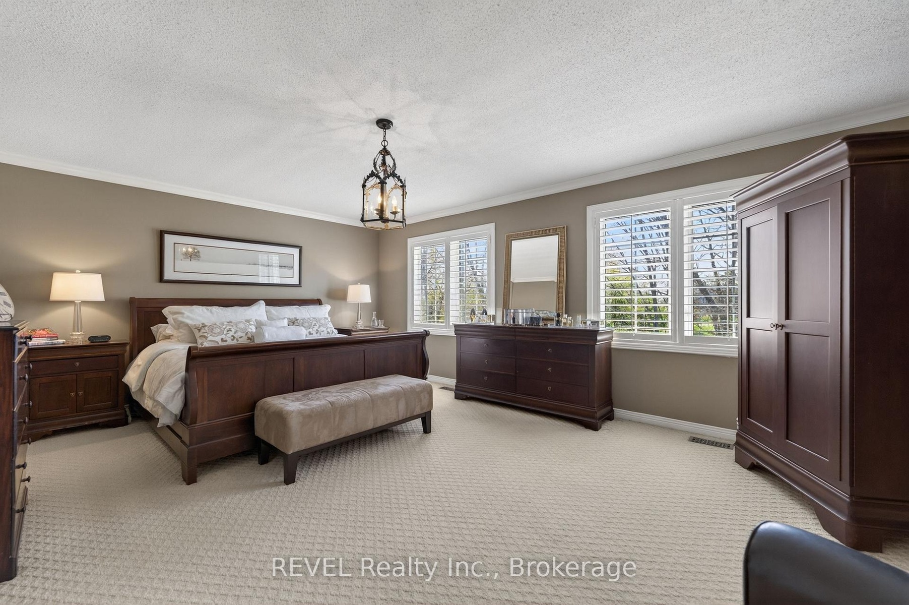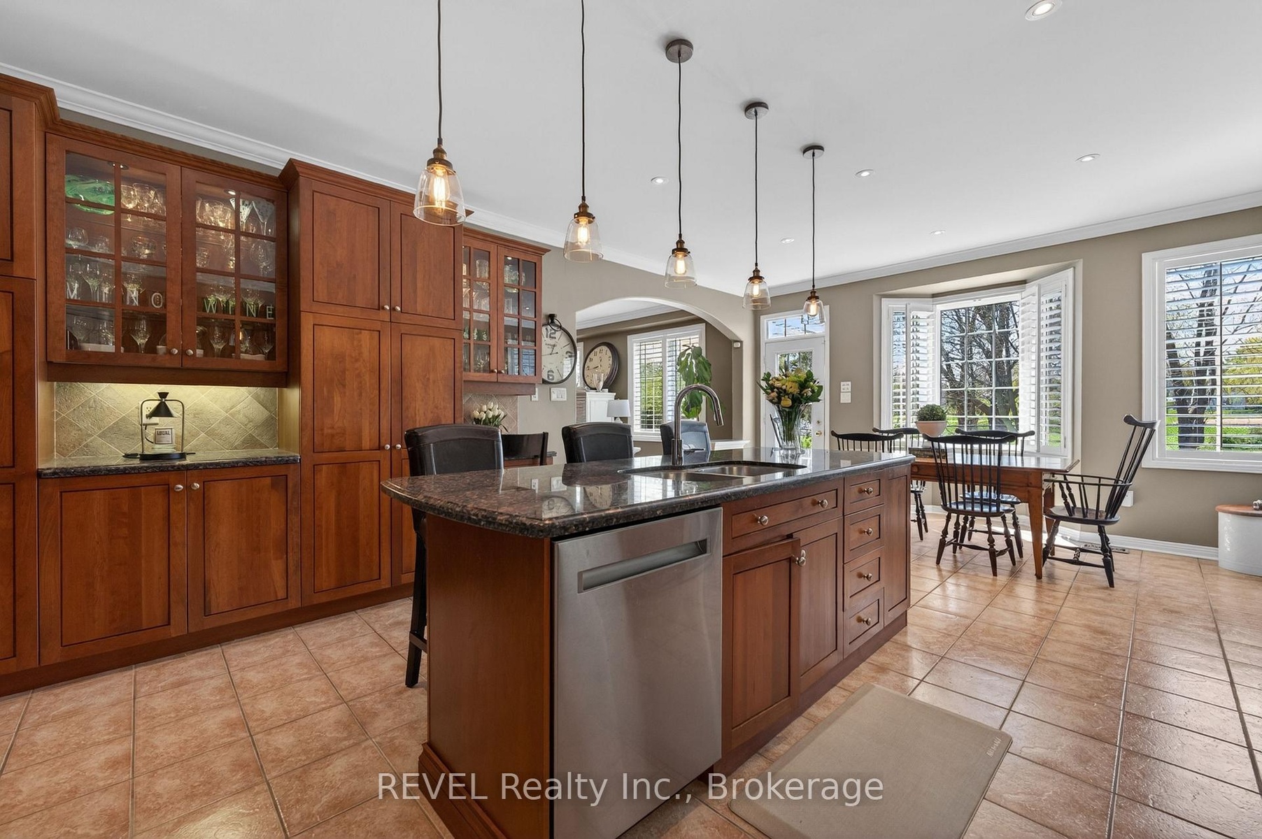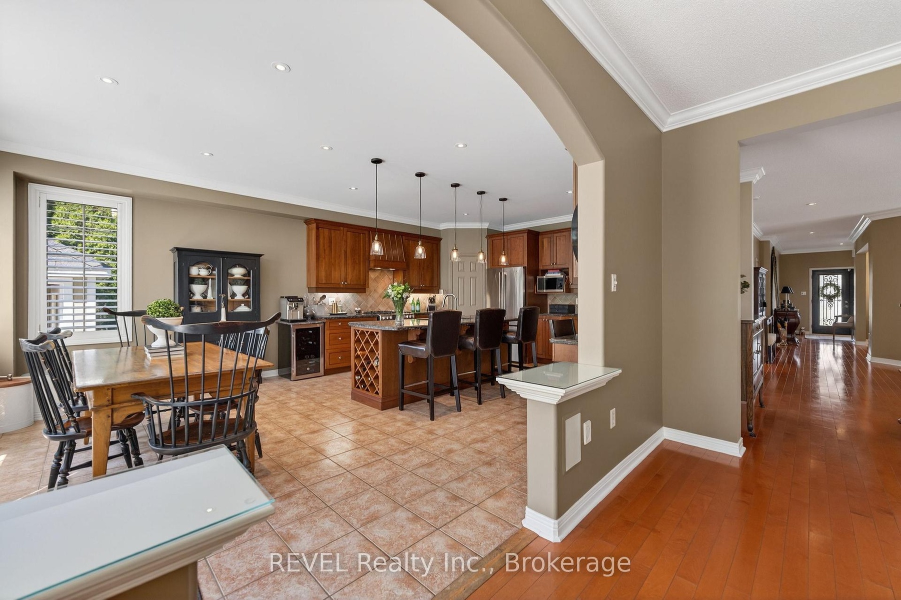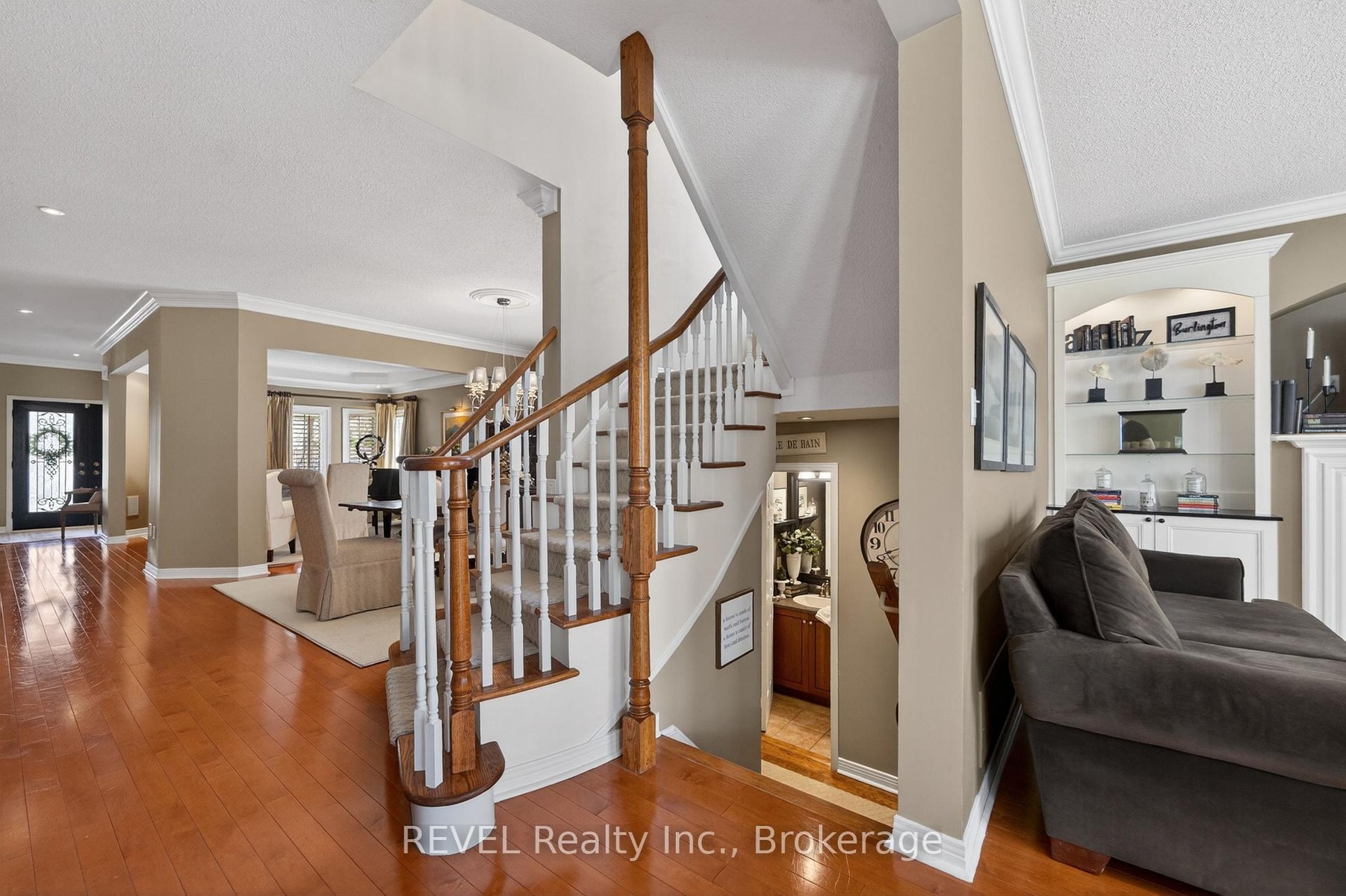 Welcome to 4266 Clubview Drive in Burlington, an exceptional home offering 3,878 sq ft above grade, set in a quiet, highly sought-after area backing directly onto Millcroft Golf Course and just a 5-minute walk to Charles Beaudoin Public School. This beautifully landscaped property features a stunning 18x34 saltwater in-ground pool with concrete surround, pergola, garden pool shed, gas BBQ line, and a covered front patio, creating the perfect outdoor retreat. Inside, the main floor showcases 10' ceilings, hardwood flooring, California wood shutters, crown molding, and a built-in sound system throughout. The spacious layout offers a formal living and dining room, a private office, and an open-concept kitchen and dinette overlooking the backyard, complete with cherry cabinetry, granite countertops, a large island with sink, and stainless steel appliances, flowing into a warm and inviting family room with gas fireplace and custom built-ins with lighting. Additional conveniences include main floor laundry, central vac, and a security system. The second level features five generously sized bedrooms, all carpeted, with two Jack and Jill bathrooms plus a luxurious primary suite with a 5-piece ensuite including a large tub, glass walk-in shower, double sinks, and his and hers walk-in closets. The fully finished basement offers laminate flooring, a sixth bedroom, full bathroom, spacious rec room with gas fireplace and built-ins with lighting, and a wet bar with fridge, perfect for entertaining. With a 3-car attached garage, 200 amp service, and double staircases to both the upper and lower levels, this home combines function, space, and elegance, all just minutes to amenities and quick access to Highway 403.