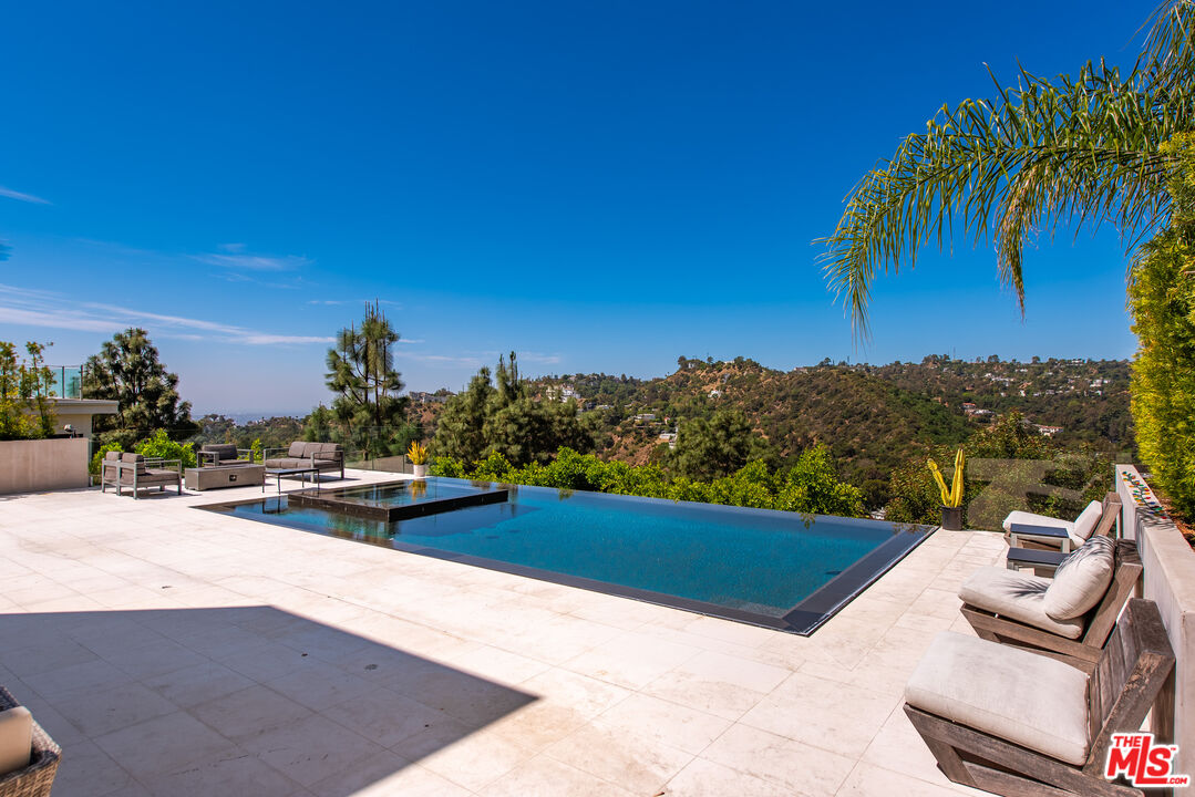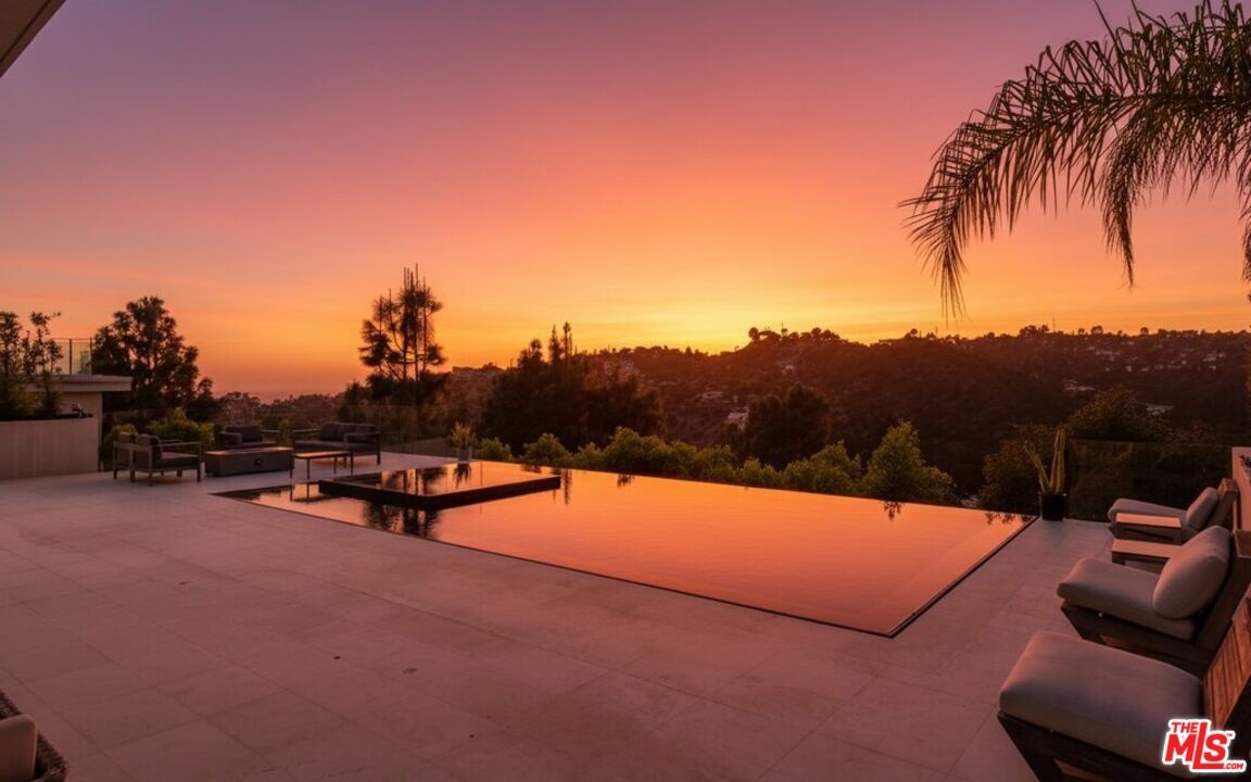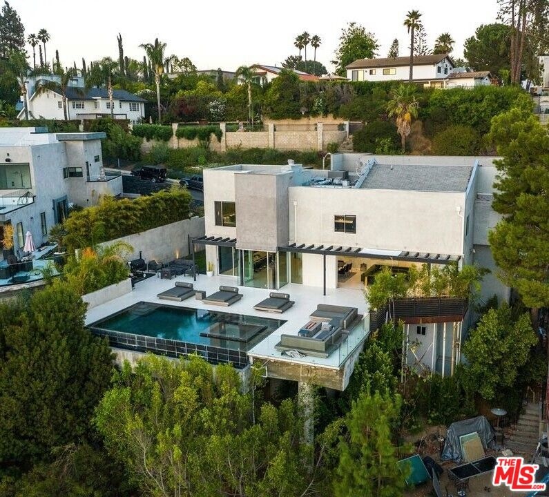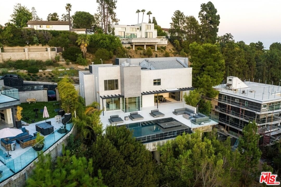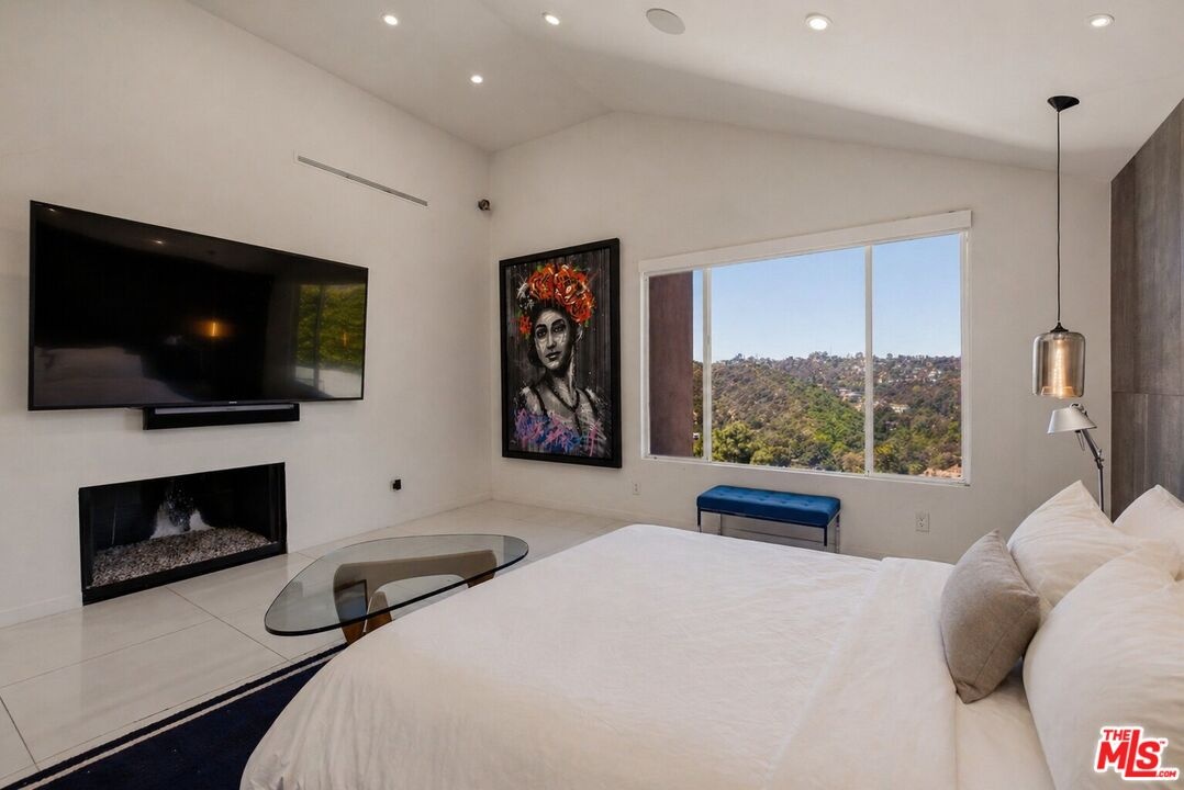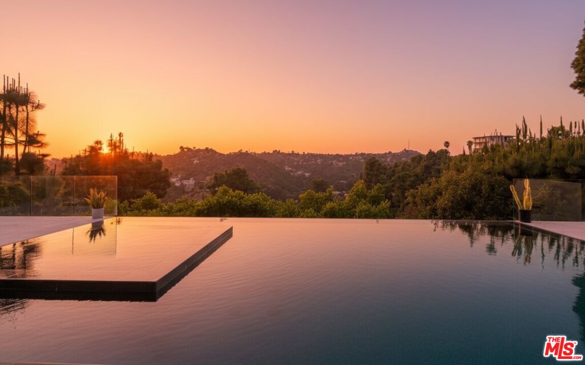Welcome to one of the most coveted addresses in the Hollywood Hills. Perched high above the city on a generous two-thirds-acre promontory in the legendary Mount Olympus enclave, this commanding Modern estate delivers the quintessential Los Angeles luxury experience with sweeping city, canyon, mountain vistas, and resort-style amenities.Mount Olympus is unlike any other community in the Hills. A master-planned neighborhood with 24/7 security, wide streets, and underground utilities. Spanning 4,512 square feet, this architecturally distinguished residence offers soaring ceilings, abundant natural light, and a flowing open floor plan equally suited for intimate family living and sophisticated entertaining. Four generously proportioned bedrooms are complemented by five well-appointed bathrooms, including a primary suite with two large walk-in closets. A home theatre, sauna, and bonus game room round out an amenity package rarely found outside of trophy properties. The chef's kitchen features premium appliances, a breakfast bar, and a sun-drenched breakfast area framed by floor-to-ceiling windows spanning the entire width of the living area. Multiple fireplaces add warmth throughout, while views of the city, canyon, hills, and greenbelt frame every room like a living painting. The expansive lot offers exceptional outdoor living space to unwind and entertain in elevated hillside serenity. Yet West Hollywood, Beverly Hills, and the Sunset Strip's world-class dining and shopping are all just minutes away. True seclusion without sacrificing convenience.