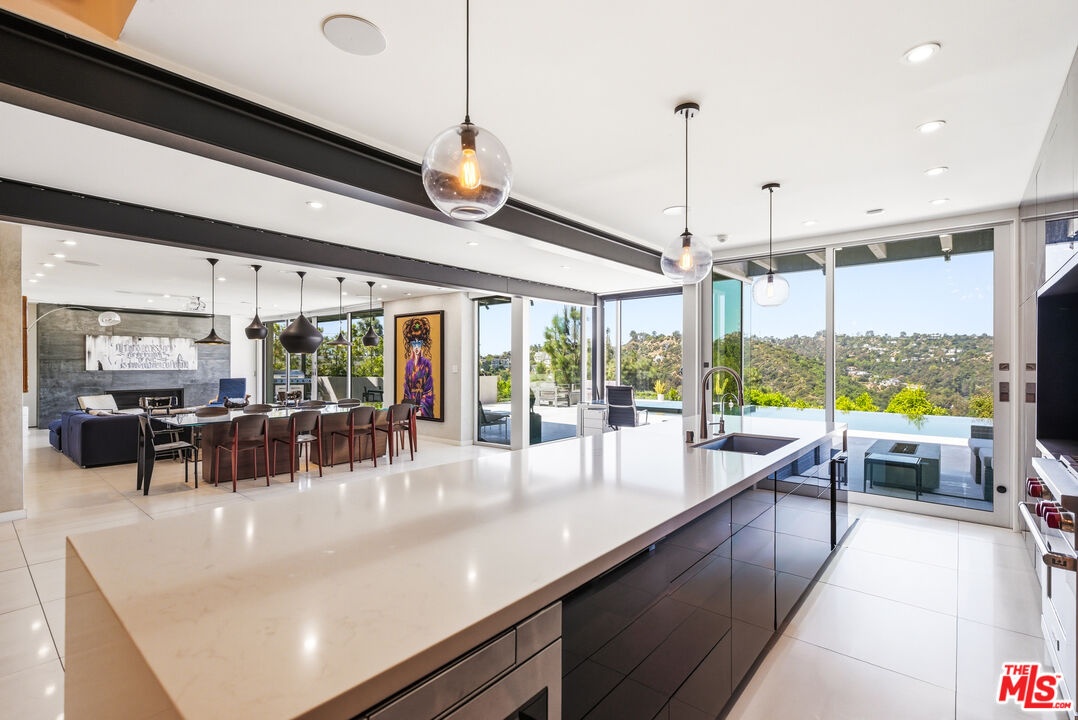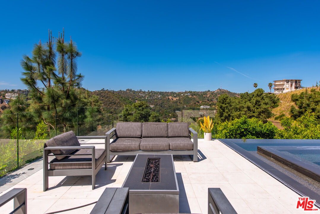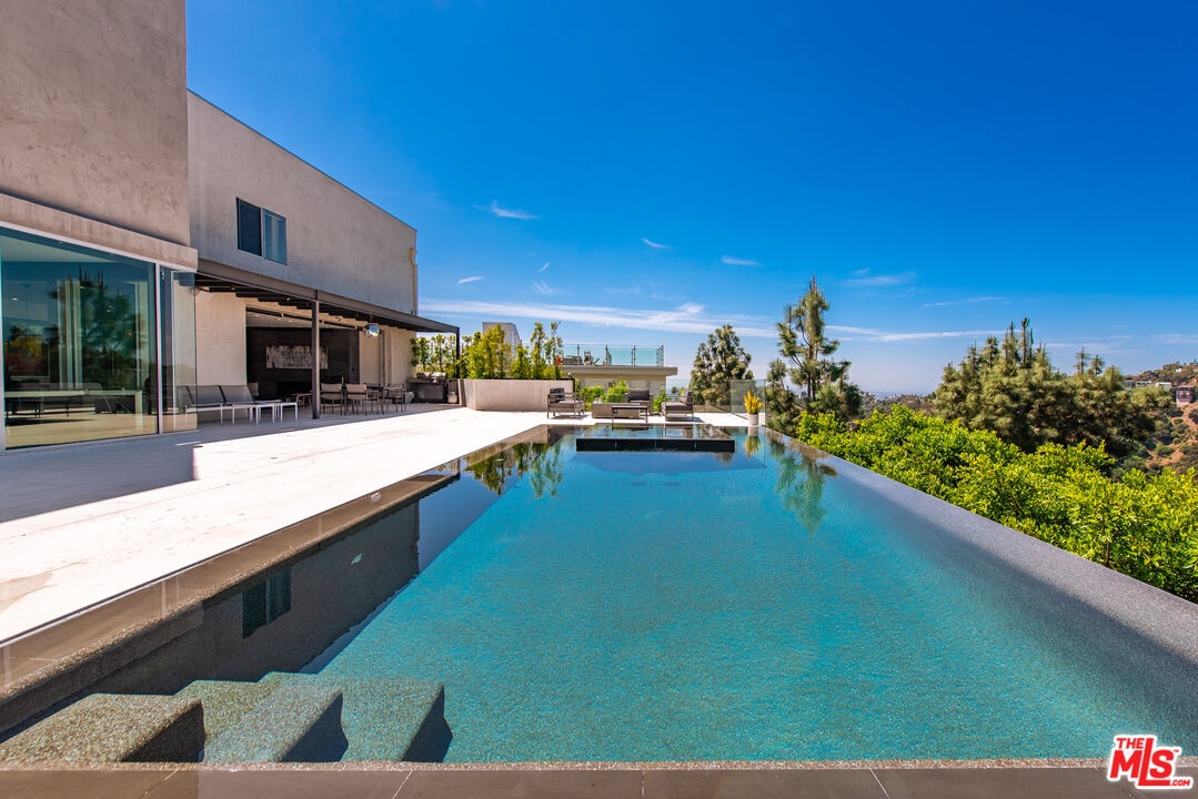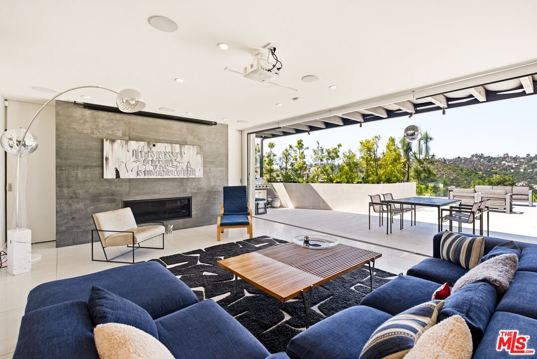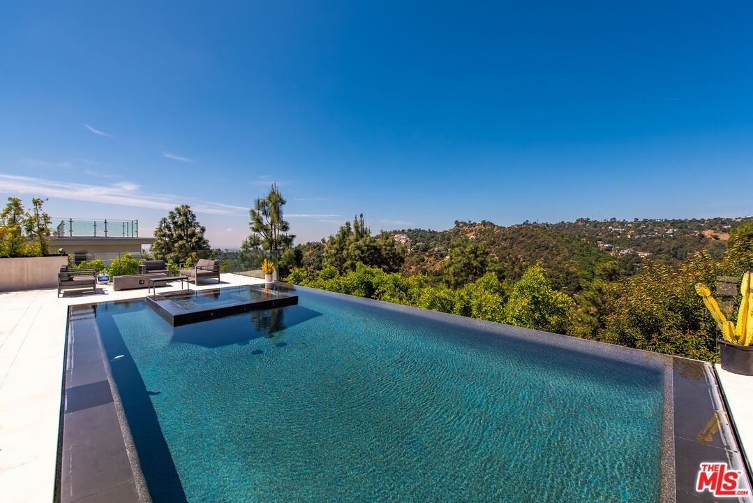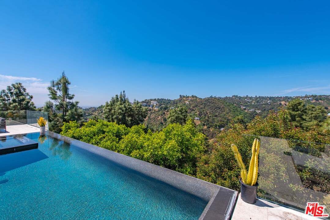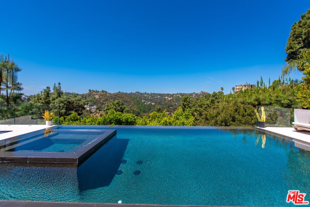 Welcome to one of the most coveted addresses in the Hollywood Hills. Perched high above the city on a generous two-thirds-acre promontory in the legendary Mount Olympus enclave, this commanding Modern estate delivers the quintessential Los Angeles luxury experience with sweeping city, canyon, mountain vistas, and resort-style amenities.Mount Olympus is unlike any other community in the Hills. A master-planned neighborhood with 24/7 security, wide streets, and underground utilities. Spanning 4,512 square feet, this architecturally distinguished residence offers soaring ceilings, abundant natural light, and a flowing open floor plan equally suited for intimate family living and sophisticated entertaining. Four generously proportioned bedrooms are complemented by five well-appointed bathrooms, including a primary suite with two large walk-in closets. A home theatre, sauna, and bonus game room round out an amenity package rarely found outside of trophy properties. The chef's kitchen features premium appliances, a breakfast bar, and a sun-drenched breakfast area framed by floor-to-ceiling windows spanning the entire width of the living area. Multiple fireplaces add warmth throughout, while views of the city, canyon, hills, and greenbelt frame every room like a living painting. The expansive lot offers exceptional outdoor living space to unwind and entertain in elevated hillside serenity. Yet West Hollywood, Beverly Hills, and the Sunset Strip's world-class dining and shopping are all just minutes away. True seclusion without sacrificing convenience.