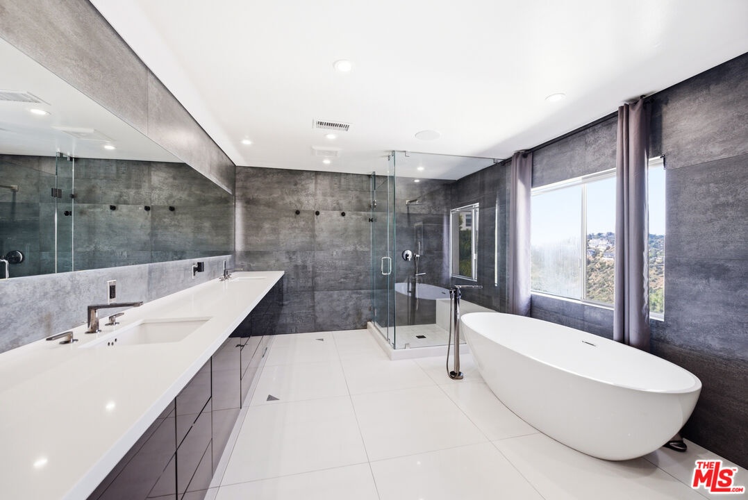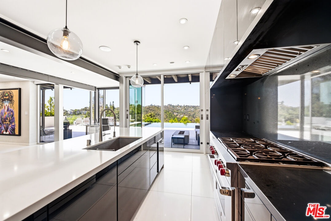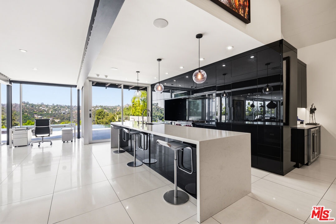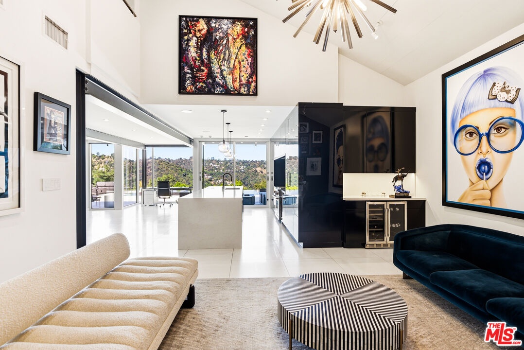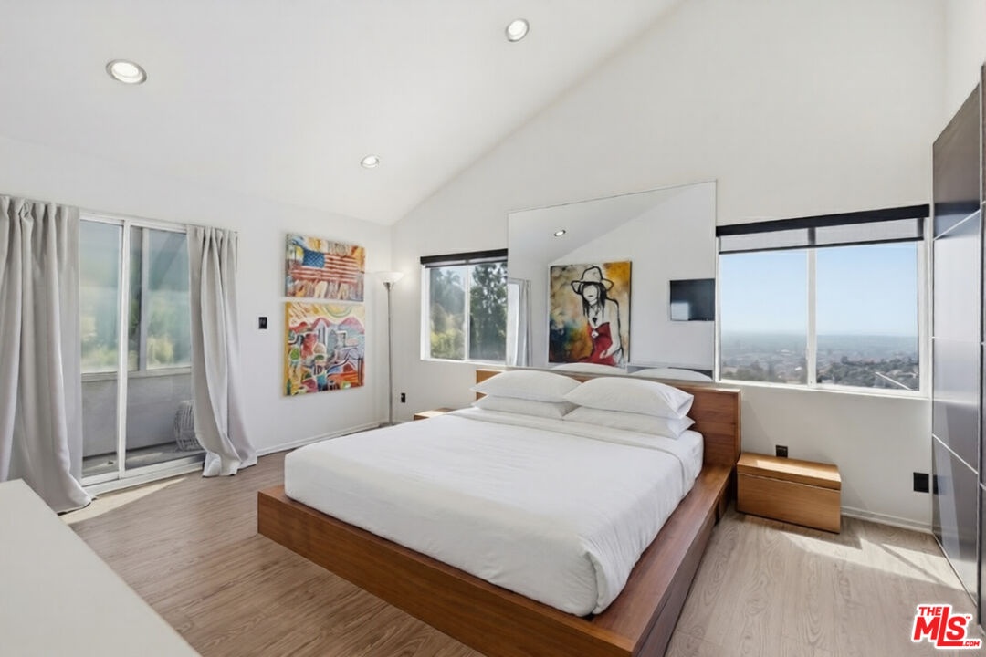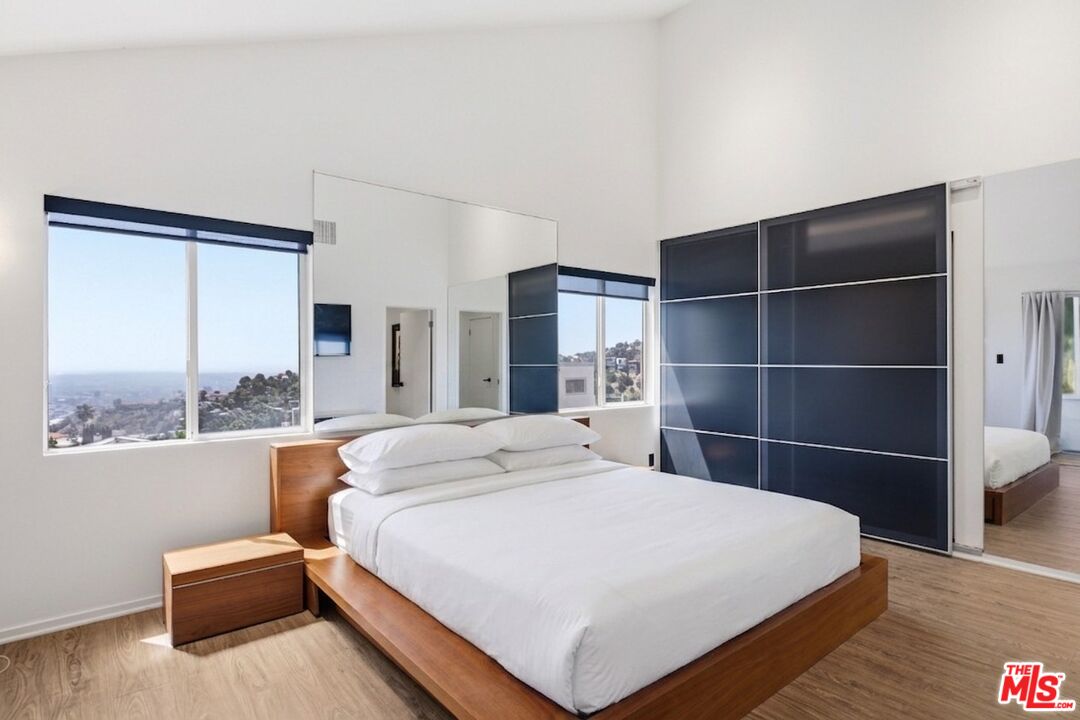 Welcome to one of the most coveted addresses in the Hollywood Hills. Perched high above the city on a generous two-thirds-acre promontory in the legendary Mount Olympus enclave, this commanding Modern estate delivers the quintessential Los Angeles luxury experience with sweeping city, canyon, mountain vistas, and resort-style amenities.Mount Olympus is unlike any other community in the Hills. A master-planned neighborhood with 24/7 security, wide streets, and underground utilities. Spanning 4,512 square feet, this architecturally distinguished residence offers soaring ceilings, abundant natural light, and a flowing open floor plan equally suited for intimate family living and sophisticated entertaining. Four generously proportioned bedrooms are complemented by five well-appointed bathrooms, including a primary suite with two large walk-in closets. A home theatre, sauna, and bonus game room round out an amenity package rarely found outside of trophy properties. The chef's kitchen features premium appliances, a breakfast bar, and a sun-drenched breakfast area framed by floor-to-ceiling windows spanning the entire width of the living area. Multiple fireplaces add warmth throughout, while views of the city, canyon, hills, and greenbelt frame every room like a living painting. The expansive lot offers exceptional outdoor living space to unwind and entertain in elevated hillside serenity. Yet West Hollywood, Beverly Hills, and the Sunset Strip's world-class dining and shopping are all just minutes away. True seclusion without sacrificing convenience.