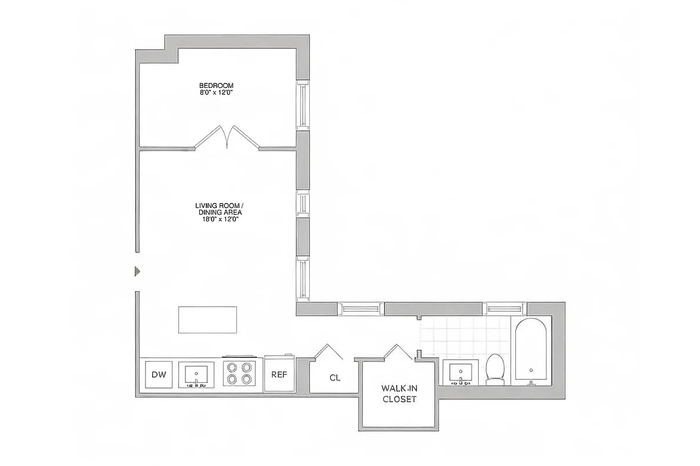 Apartment 5E seamlessly blends classic New York charm with modern design. The gut-renovated kitchen is the centerpiece of the home, featuring custom floor-to-ceiling cabinetry, sleek quartz countertops, stainless steel appliances, and a generous island perfect for dining and entertaining. Hardwood floors, high ceilings, and exposed brick bring warmth and character to the airy, open layout.