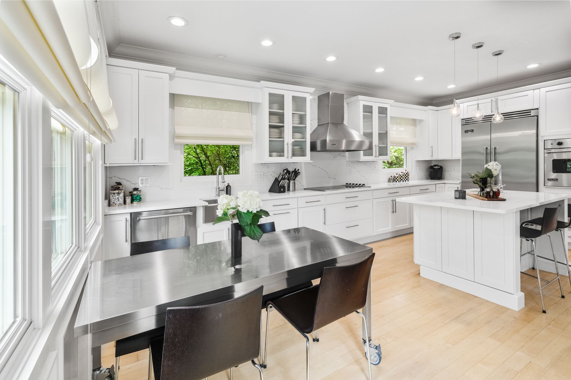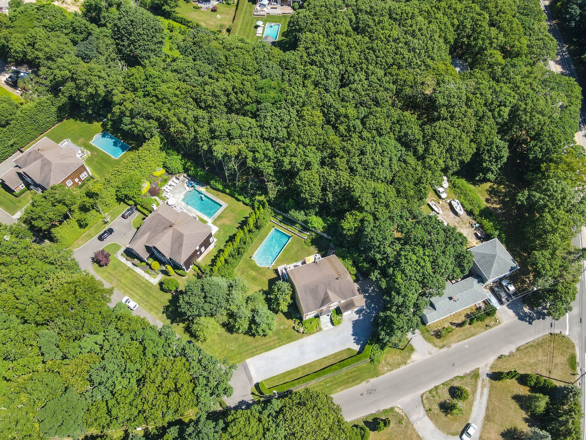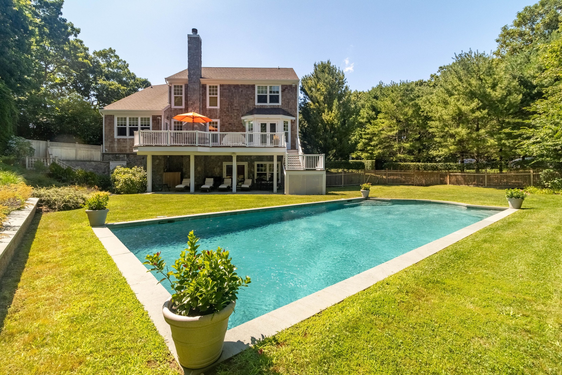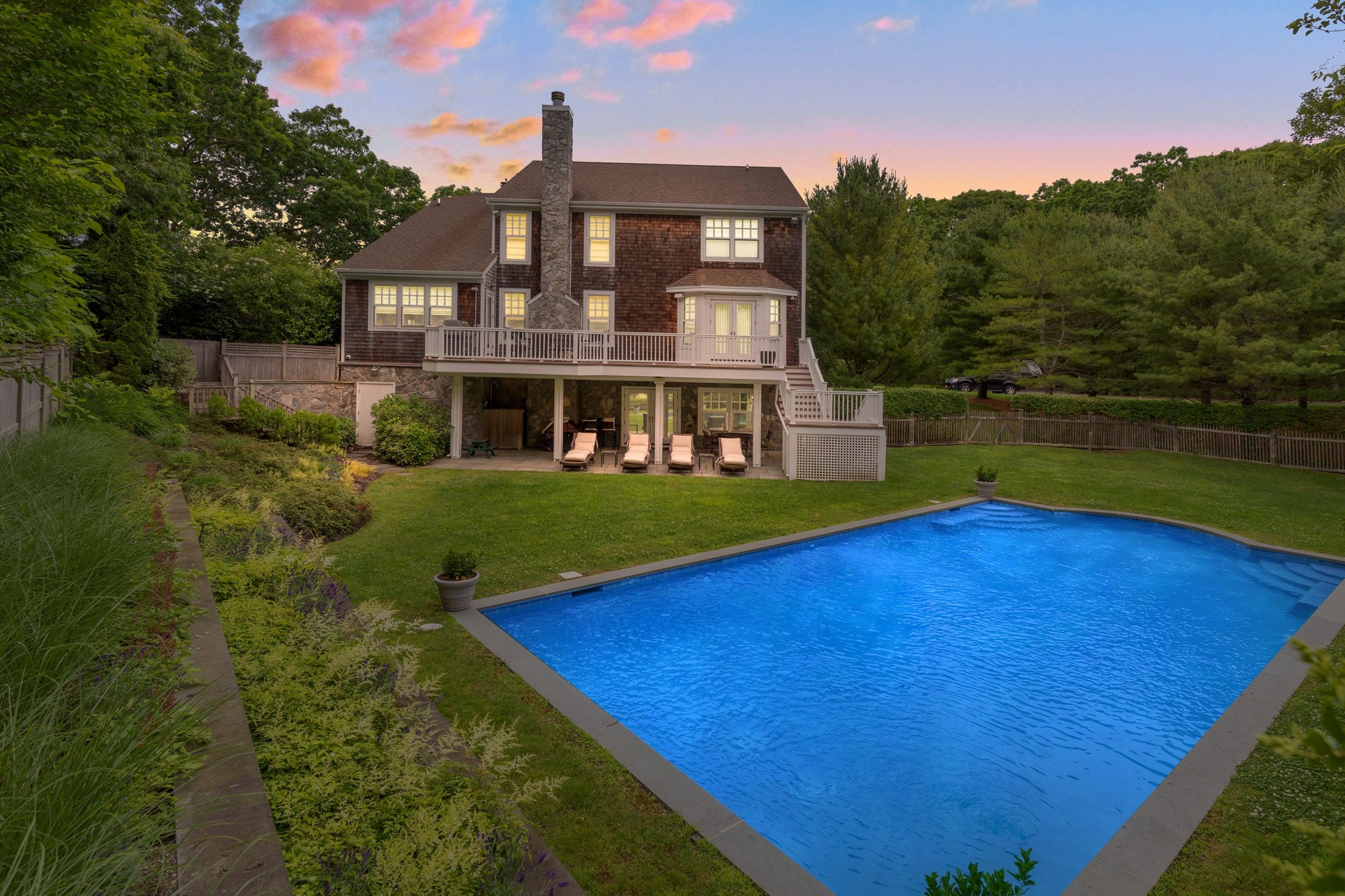 Moments to the Village and Coopers Beach. A custom home by one of the area's top builders. 4,000+sf of luxury living on three levels with 6 bed and 5.5 baths. Gracious entry way with formal living and dining rooms. Soaring great room with wood burning fireplace and an open eat-in Chef's kitchen with a Viking appliance suite. The first floor master suite leads out the extensive decking overlooking the well-manicured property. A side entrance mud room, laundry and 2 car garage complete the first floor. Ascend the grand staircase to the upper level with 2 ensuite guestrooms and 2 bedrooms with a shared bath. The finished lower level boasts a full walk out to the pool deck. Rec area with billiards and a full splash bar, gym and full bath. Outback a heated Gunite pool, outdoor shower and mature landscaping package wrap this lush hideaway.