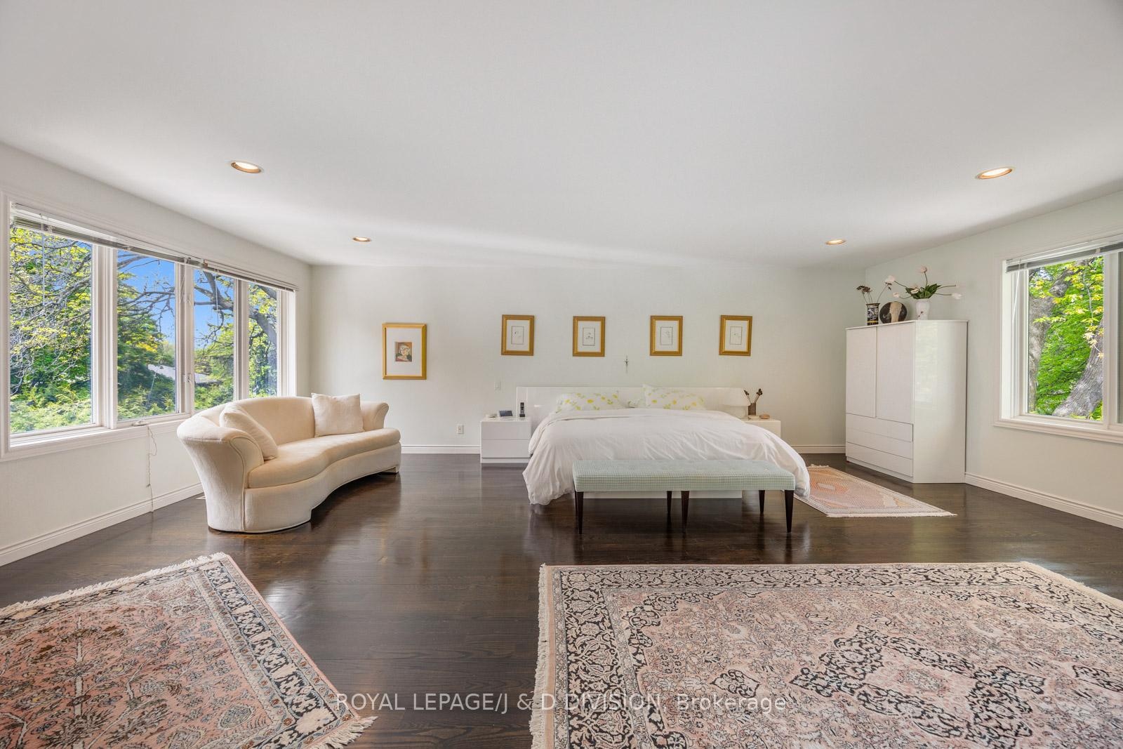 Beautifully situated in Henry Farms on a gorgeous tree-lined street this handsome, spacious family home was rebuilt in 1994 by the present owners. Soaring ceilings with stunning spiral staircase present at front foyer beautifully. 31 George Henry Boulevard offers potential for families with teenagers, or multi-generational families with grandparents wanting separate quarters above grade. The lower level offers 1,300 sq ft of extra living space, the fully fenced back yard is totally private with massive evergreens. Minutes from TTC, shopping, tranquil ravine trails, and great access to highways. Truly a wonderful family home.