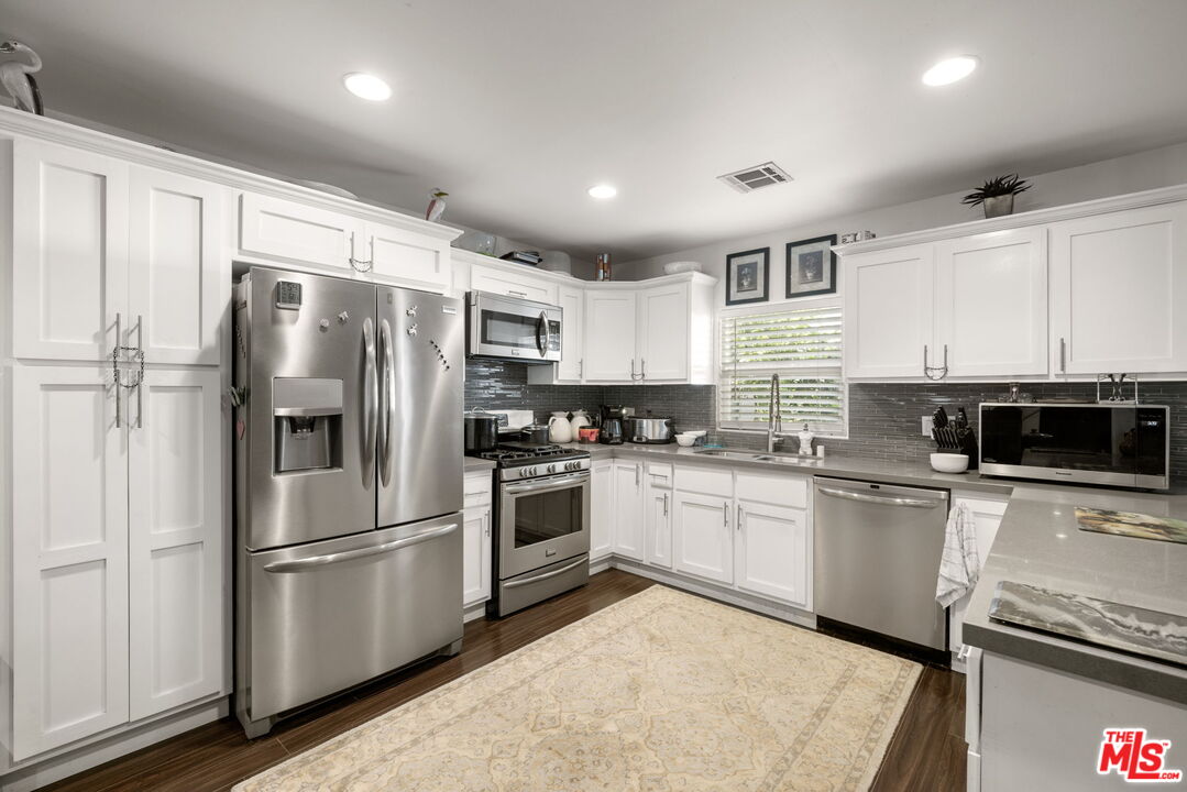 Condo/Townhome alternative in Reynier Village with private outdoor space and no HOA dues. Ideally located near Culver City, just two blocks from Helms Bakery District and walkable to the Culver City Arts District, this well-maintained home offers a functional layout and meaningful upgrades. The main level features an open living and dining area with recessed lighting and durable flooring, plus a clean, efficient kitchen with quartz counters, stainless appliances, and ample cabinetry. Upstairs includes 3 bedrooms, highlighted by a primary suite with private deck, dual closets, and an updated bath with double vanity and oversized shower.Outdoor spaces are a standout, with a gated front yard and a private rear yard framed by lush, mature landscaping thoughtfully planted and cultivated by the current owner creating a green, private setting anchored by a large redwood deck ideal for relaxing or entertaining. A detached 2-car garage with epoxy flooring adds function and flexibility. Capital improvements add real value: updated ABS drain lines, foundation retrofit with steel reinforcement plates, earthquake gas shutoff valve, newer central A/C and tankless water heater (~3 yrs), plus interior/exterior paint within recent years. Additional features include built-in bookcase, ceiling fans, redwood fencing to the alley, and a well-maintained gas furnace. A smart alternative to condo living with more privacy, usable outdoor space, and no monthly dues. Showings by appt only. Do not disturb occupant.