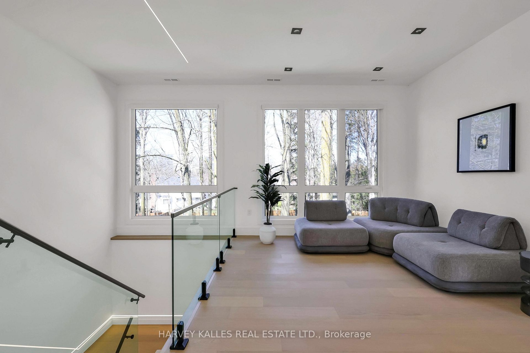 Tucked Into One Of Newmarket's Most Established Crescent Settings, This Fully Recreated 4+2 Bedroom and 5-Full Bathroom Residence Offers Almost 5,000 Sq. Ft. Of Total Living Space, Set On A Private 0.374-Acre Lot. Every Element Has Been Considered , Wide-Plank White Oak Hardwood, Bespoke Millwork, Designer Lighting, And A Curated Colour Palette That Carries Seamlessly From Room To Room. From Across The Open Main Floor, Floor-To-Ceiling Glass Frames A Private, Park-Like Backyard Revealing A Seamless Indoor-Outdoor Connection That Defines The Home. High Ceilings And Generous Principal Rooms Create A Sense Of Scale Rarely Found At This Size. The Chef-Inspired Kitchen Is A Statement In Itself - A Double-Level Island With Leathered-Finish Countertop, Integrated Wine Cellar, And A Fully Integrated Jenn-Air Appliance Suite - Anchored By A Light-Filled Main-Floor Office Wrapped In Floor to Ceiling Glass With Custom Built-In Shelving And Cabinetry, Offers Rare Privacy And Natural Light - Purpose-Built For The Remote Professional. Upstairs Offers 4 Large Bedrooms, Each With A W/I Closet, Including A Primary Retreat With Walk-Out Dressing Room, Centre Island, And Spa-Inspired Ensuite With Heated Floor. The Lower Level Adds A Self-Contained 2-Bedroom Apartment With Separate Entrance - Flexible Space For Extended Family Or Guests. The Backyard Is Framed By Mature Trees And Widens Generously Toward The Rear - A Rare, Park-Like Setting In The Heart Of Town. The House Speaks For Itself. Minutes To Downtown Newmarket's Historic Main Street, Riverwalk Commons, Fairy Lake Trails, And Newmarket GO Station.