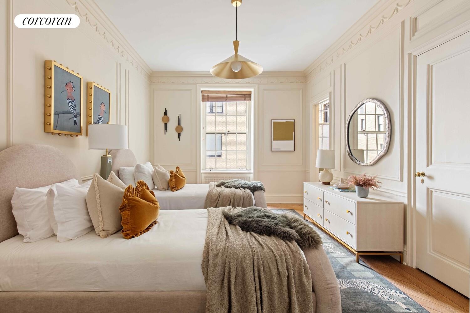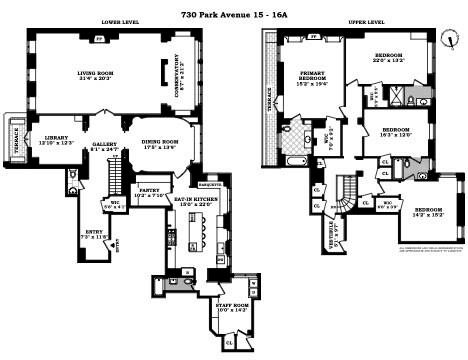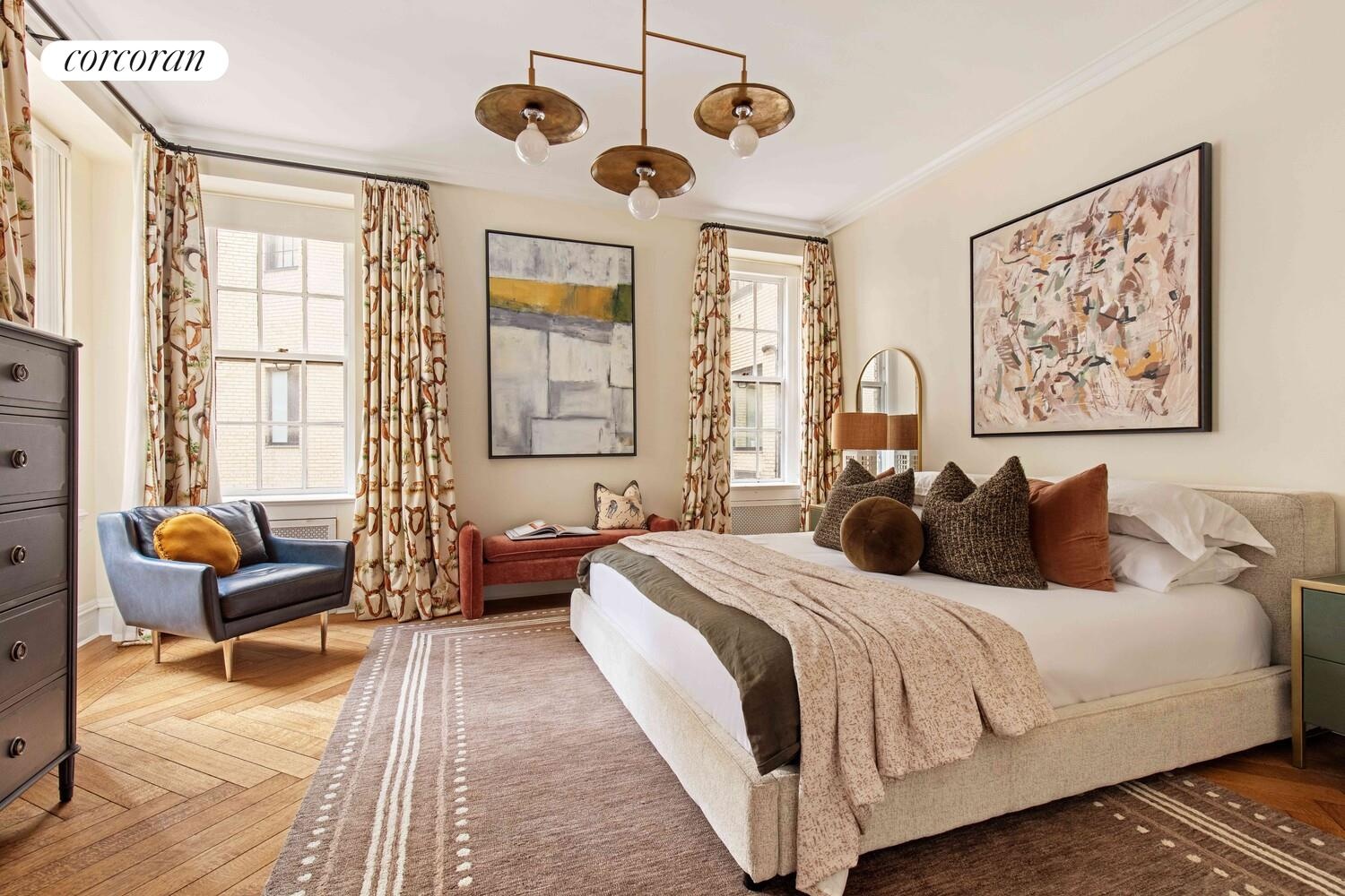Perched high atop the 15th and 16th floors of one of Park Avenue's most distinguished white-glove prewar cooperatives, this exceptional duplex residence offers a gracious layout, soaring ceilings, and captivating cityscape views. Beautifully renovated and bathed in natural light, the home is distinguished by two small private terraces, exquisite moldings, custom cabinetry, and rich hardwood plank-and-peg floors throughout.