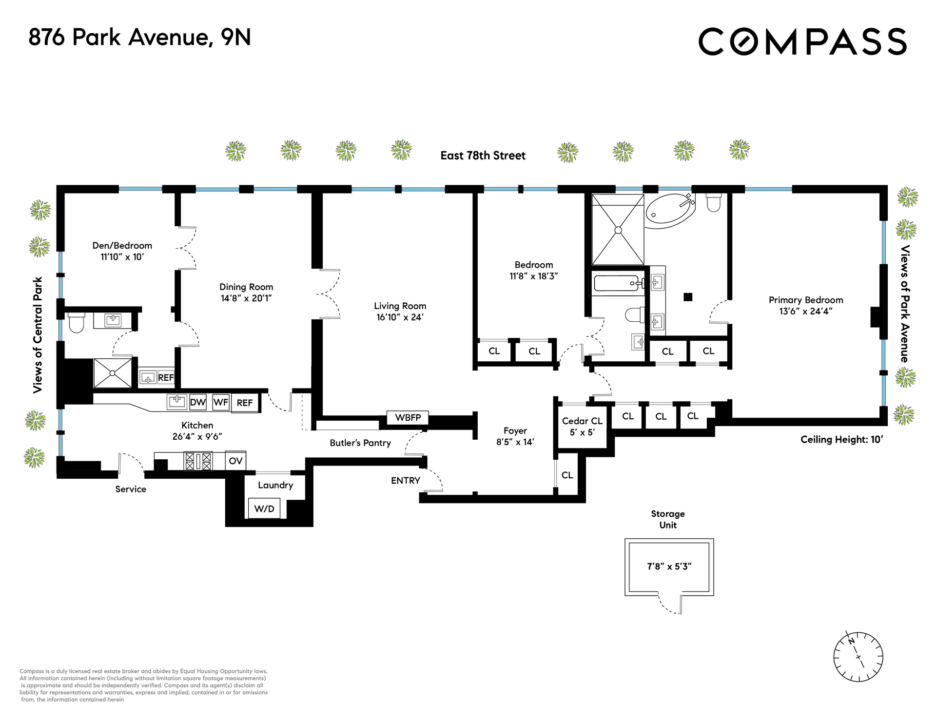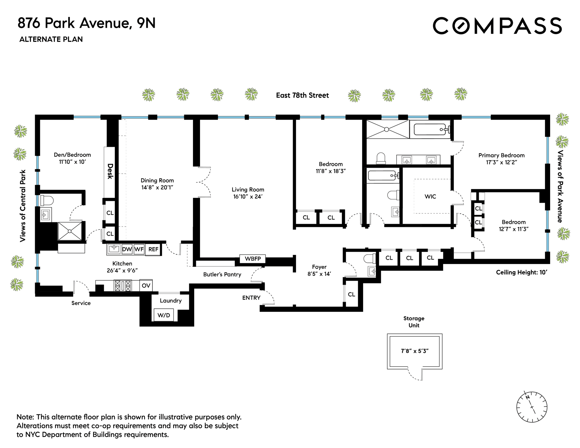 Built in 1917, 876 Park Avenue is a distinguished white-glove cooperative designed by renowned architects W. L. Rouse and L. A. Goldstone and is ideally located on 78th Street in the heart of the Upper East Side's historic district and just moments away from Central Park, the Metropolitan Museum of Art, Sotheby's, The Carlyle, The Mark and The Surrey, as well as many of the city's best public and private schools and the neighborhood's best restaurants, shopping and cultural institutions. The boutique building comprises just 27 residences and offers a full-time doorman, fitness center, and private storage. Financing up to 30% is permitted, pets are welcome, and a 3% flip tax is payable by the purchaser. A storage bin transfers with the sale.