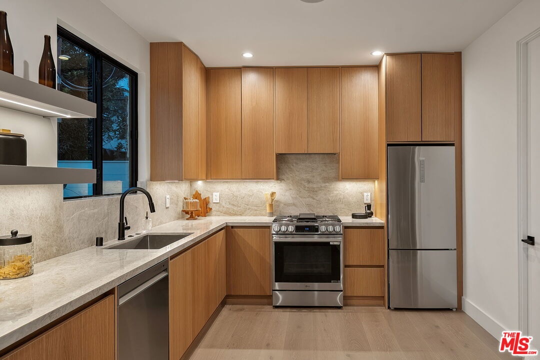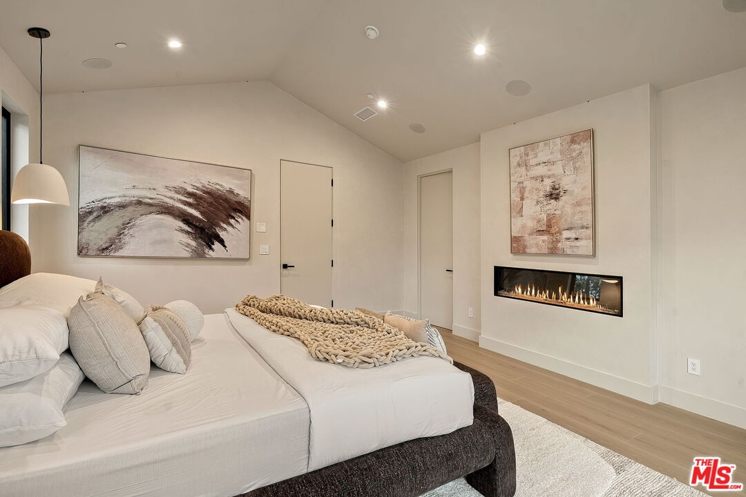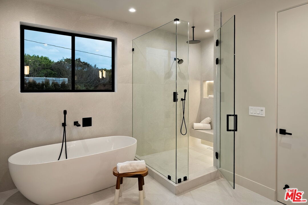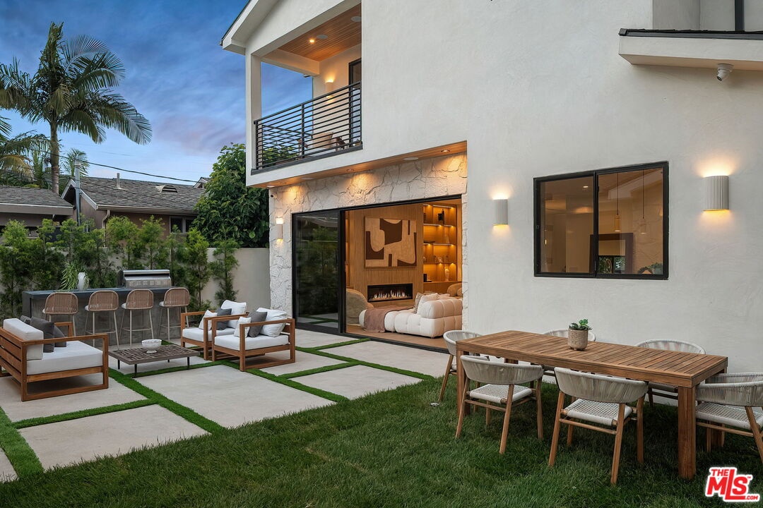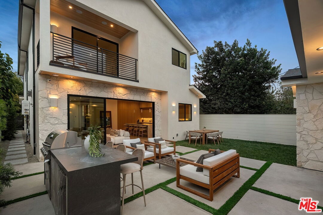 A striking fusion of contemporary design and natural elements, this newly built organic modern farmhouse offers an unparalleled living experience. Designed with seamless indoor-outdoor flow, the open-concept layout is bathed in natural light, boasting soaring ceilings and meticulous craftsmanship throughout. This fully automated smart home showcases exquisite European white oak flooring, custom rift white oak cabinetry, and hand-selected marble and tile, complemented by premium fixtures. The heart of the home is a chef's dream kitchen, featuring sleek custom-paneled Thermador appliances, an oversized waterfall island with Taj Mahal quartzite, and seamless integration with the spacious dining and living areas. A dramatic floating staircase adds architectural interest, while expansive glass doors open to a private entertainers paradise complete with a built-in BBQ island, lush green space, and ample room for gatherings. Upstairs, the serene primary suite is a true retreat, offering a cozy fireplace, a spa-inspired bathroom with a soaking tub, rain shower, dual vanity, and a generous walk-in closet. A private balcony overlooks the beautifully landscaped backyard, adding to the tranquil ambiance. Two additional en-suite bedrooms provide comfort and sophistication. Adding to the homes versatility, a separate 1-bedroom, 1-bathroom ADU with a full kitchen offers endless possibilities, ideal for guests, or a private office. Located in the highly coveted Mar Vista wood streets neighborhood, this rare gem offers an exceptional blend of style, comfort, and functionality.