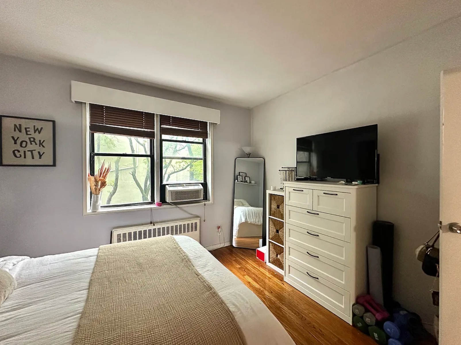 This generous 2 BR apt is a corner unit with excellent sunlight, North and West exposures. Both Bedrooms are large enough for king size beds and additional furniture. Features a windowed kitchen and bath, tons of closet space and beautiful hardwood floors. The large living room has a separate dining area. Building features 24 HR doorman, elevator and spacious lobby area. Convenient location is near Fairway Market, Trader Joe’s AMC Theater and NYU Tisch Hospital. The very reliable M15 bus line runs up and down 1st and 2nd Aves.