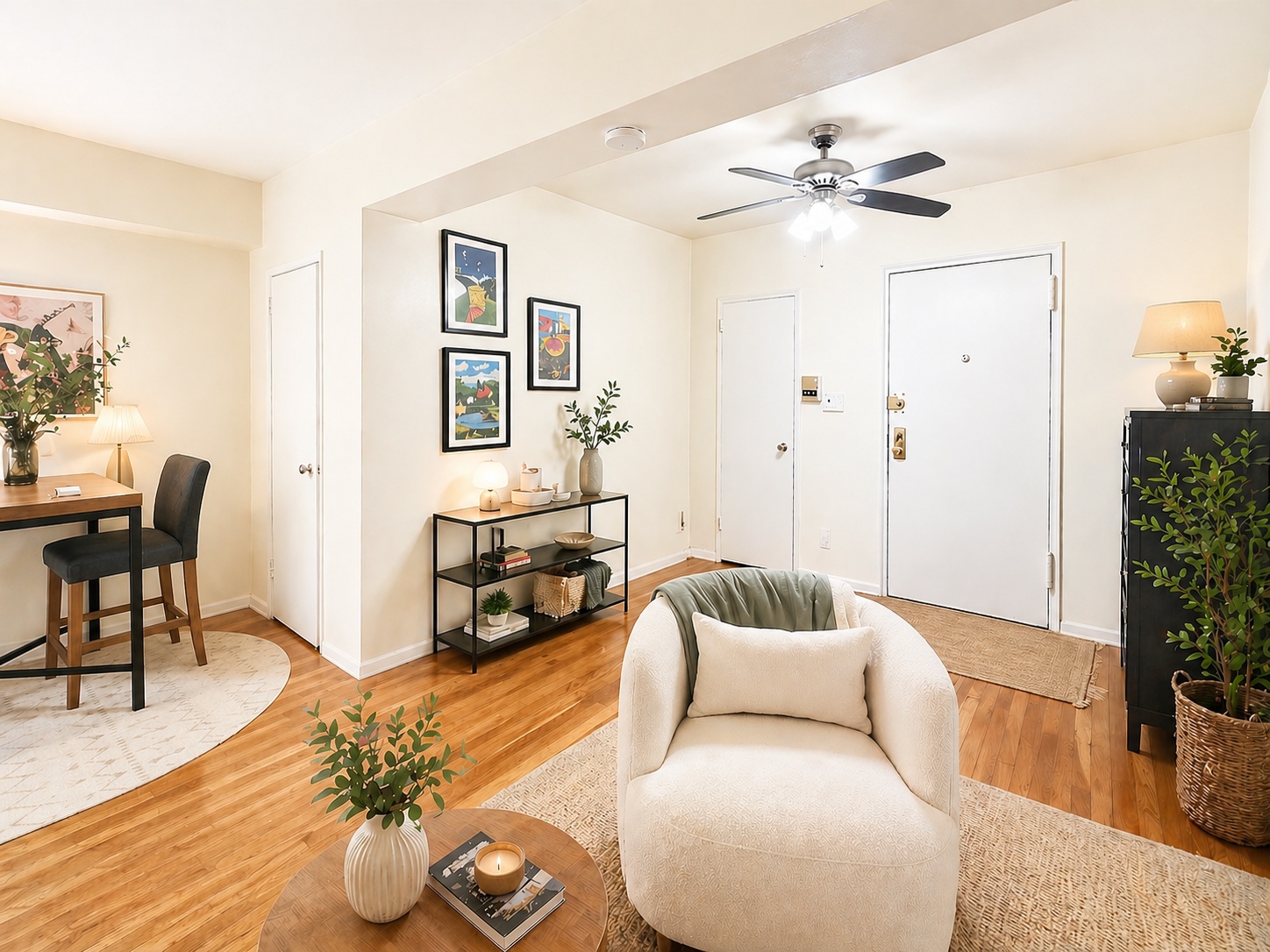 This generous 2 BR apt is a corner unit with excellent sunlight, North and West exposures. Both Bedrooms are large enough for king size beds and additional furniture. Features a windowed kitchen and bath, tons of closet space and beautiful hardwood floors. The large living room has a separate dining area. Building features 24 HR doorman, elevator and spacious lobby area. Convenient location is near Fairway Market, Trader Joe’s AMC Theater and NYU Tisch Hospital. The very reliable M15 bus line runs up and down 1st and 2nd Aves.