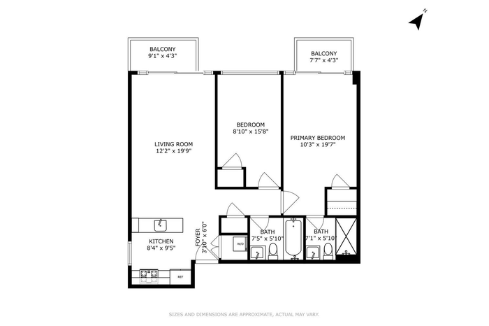 The split-bedroom layout just works. The primary suite is spacious, with its own private balcony and en-suite bath. The second bedroom is ideal for guests, a home office, or both. Both bathrooms are crisp, modern, and well designed.