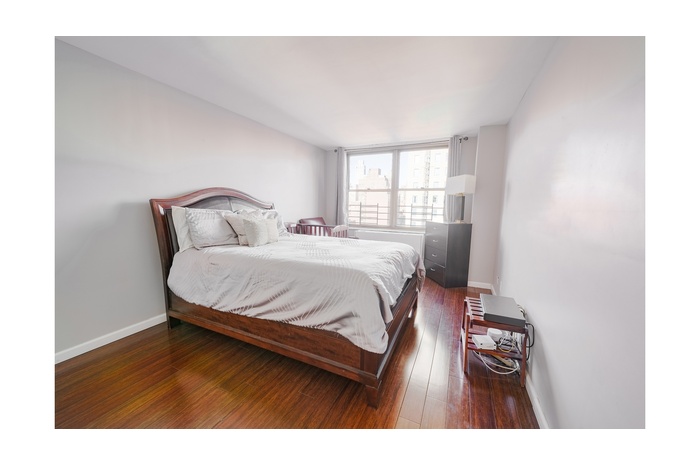 The building is staffed by a team of 27, with a concierge desk, a beautifully landscaped rooftop, and a common laundry room.
