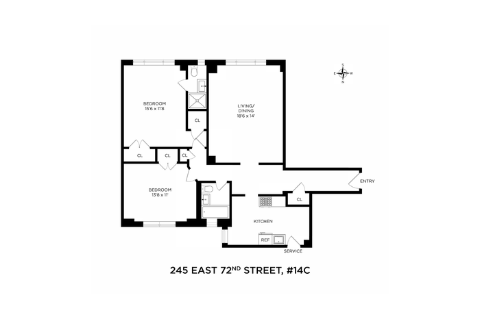 Additional features include high beamed ceilings, excellent closet space, and the elegant prewar layout and architectural integrity that define Emery Roth's most enduring homes. Offered in move-in condition, apartment 14C presents a rare opportunity to enjoy classic Upper East Side living in a coveted full-service cooperative. 245 East 72nd Street is a coveted white-glove cooperative known for its elegance, service, and architectural pedigree.