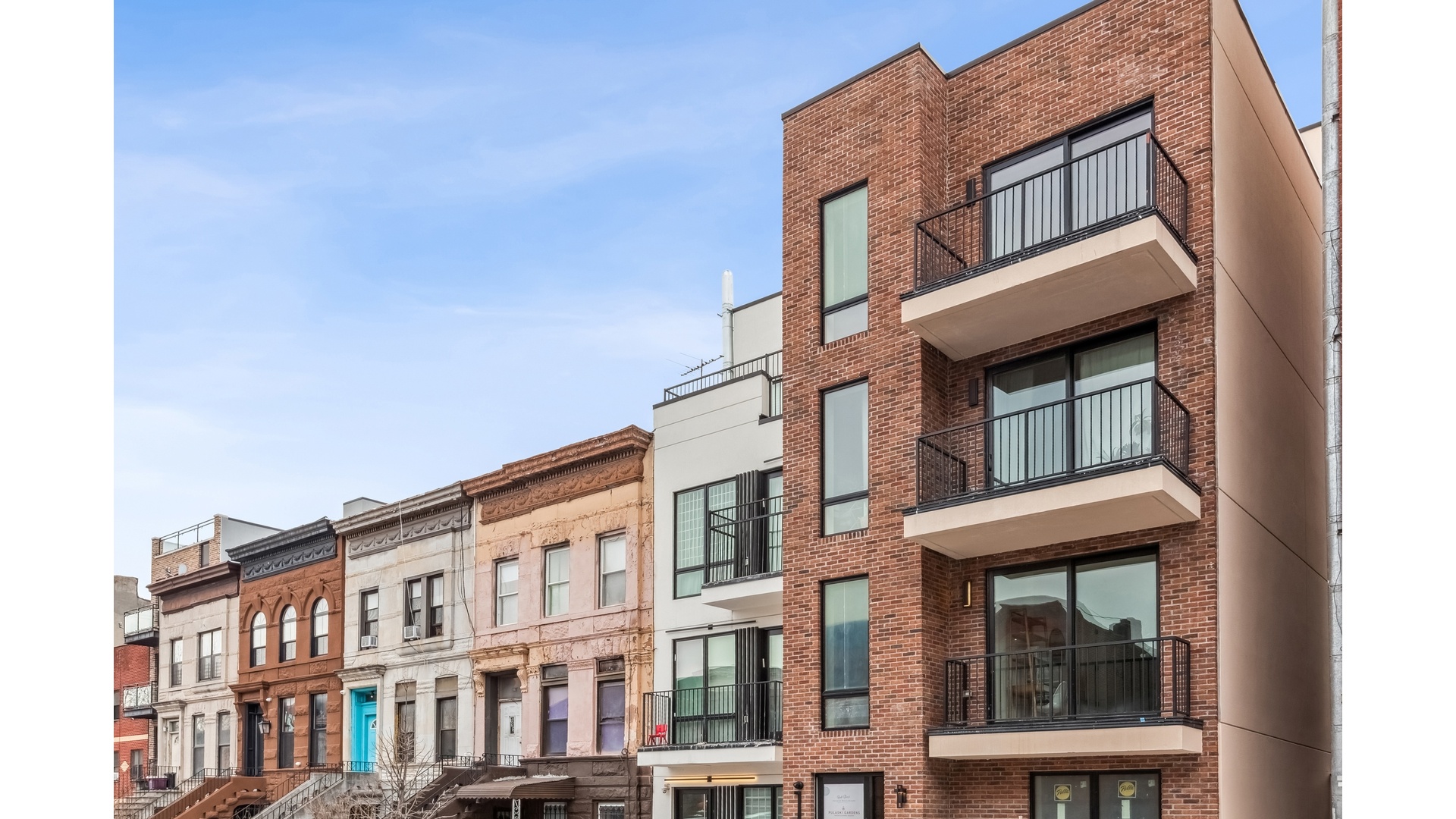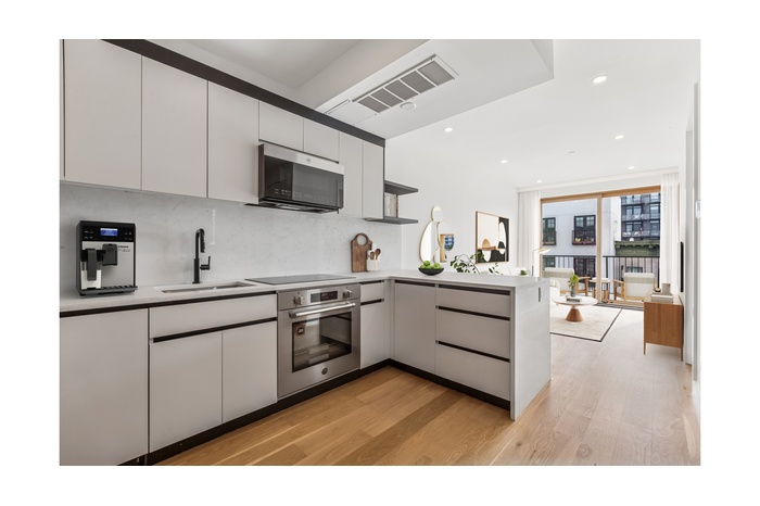 Pulaski Gardens is a newly constructed, seven-unit boutique condominium set on a quiet, tree-lined brownstone block in the heart of Bedford-Stuyvesant. Thoughtfully designed to balance privacy with elevated modern living, the building offers a refined residential experience enhanced by smart keyless entry, a virtual doorman system, and multi-zone heating and cooling throughout.