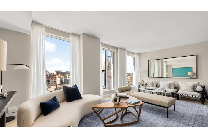 At the center of inspiration, on a prime block straddling the nexus of Chelsea and the energy of the High Line and Hudson Yards, Maverick features a collection of 1-4BR residences. Oversized windows, stretching as much as 5' x 8' are complemented by glass Juliet balconies, erasing the boundaries between the indoors and the outside. Honoring our locale, Maverick is an address that blooms throughout the seasons. At the entry, an angled bronze marquee is enlivened by a cascade of verdant plantings. Lush landscaping frames the floor-to-ceiling windows, which allow natural light to pour into the design-centric lobby with its custom luminous angular ceiling installation.