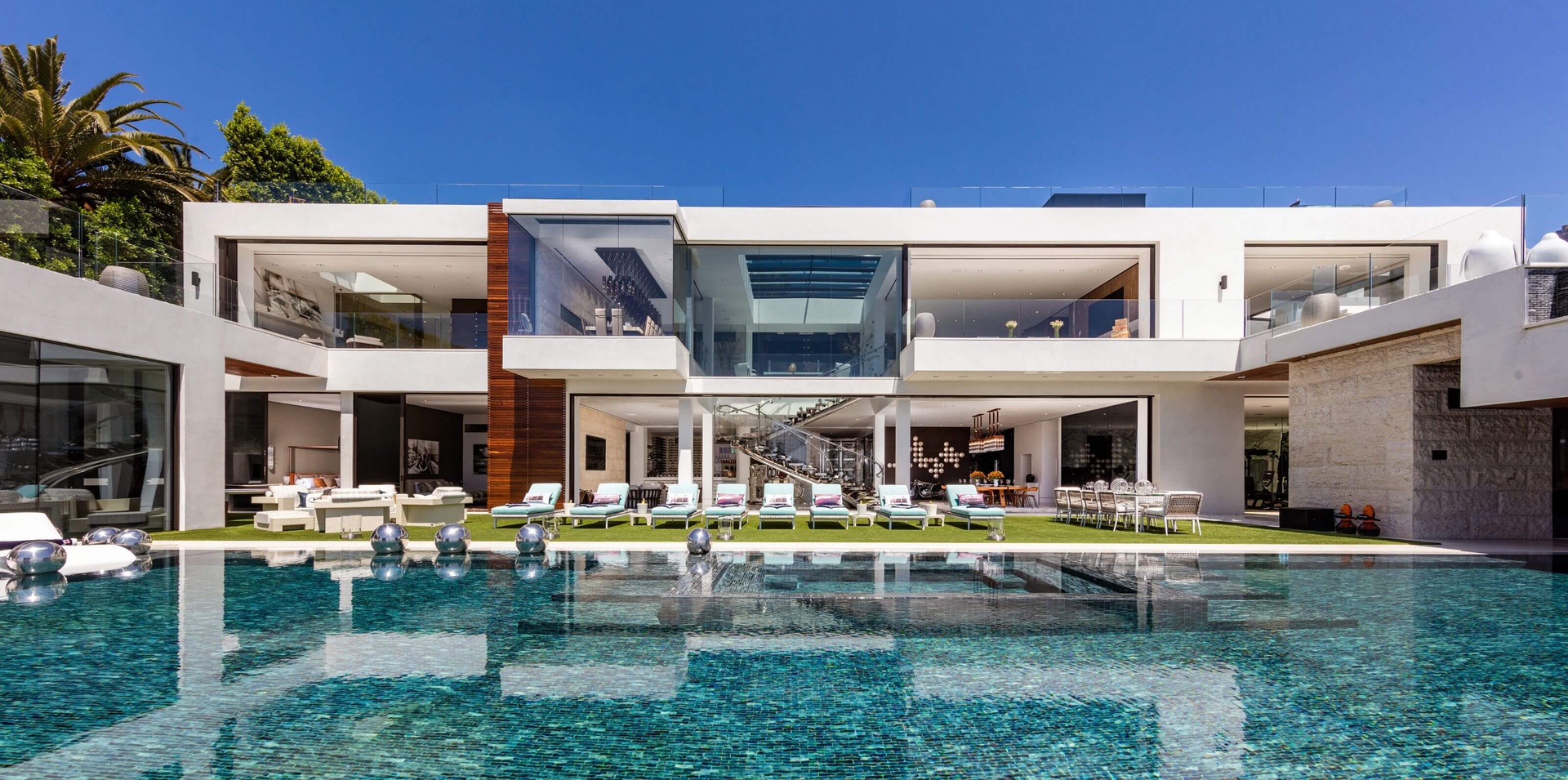 The pinnacle of splendor & luxury. 38k sq ft new construction home +17k sq ft of entertainment decks, 2 master suites, 10 over-sized VIP guest suites, 21 luxurious bathrooms, 3 gourmet kitchens, 5 bars, massage studio/wellness spa, state-of-the-art fitness center, 85-foot glass tile infinity swimming pool, 40-seat 4K Dolby Atmos Theater, 4 lane bowling alley/lounge, auto gallery w/cars, 7-person full time staff, over 100 curated art installations, outdoor pop-up theater, 2 fully-stocked champagne/wine cellars, massive candy wall, the most advanced home tech system in the world. Astonishing array of amenities & bespoke items from around the world, 4 meticulously curated levels, indoor/outdoor nirvana enhanced by 270-degree unobstructed views spanning from the mountains all the way to the ocean & the incredible Los Angeles skyline in-between.