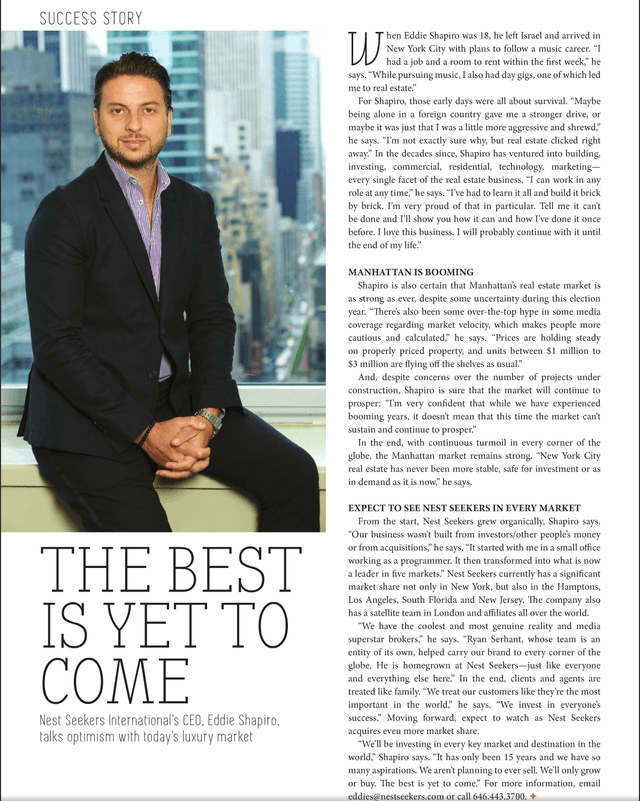 NEST SEEKERS INTERNATIONAL'S CEO EDDIE SHAPIRO TALKS OPTIMISM WITH TODAY'S LUXURY MARKET