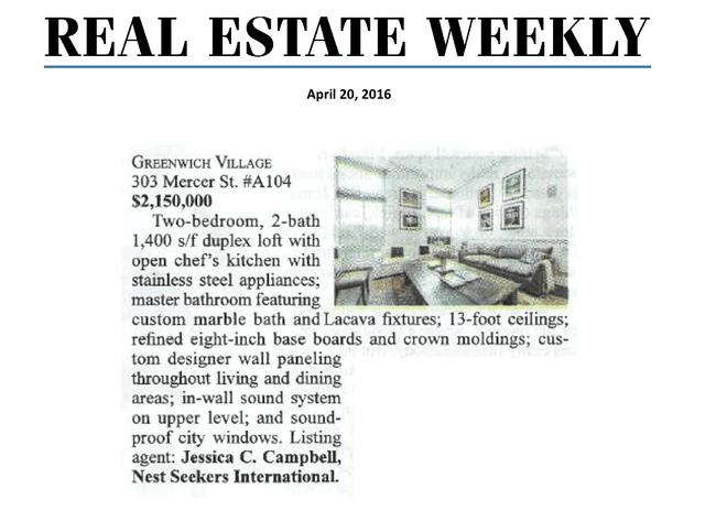 REAL ESTATE WEEKLY | 303 MERCER STREET RESIDENCE A104