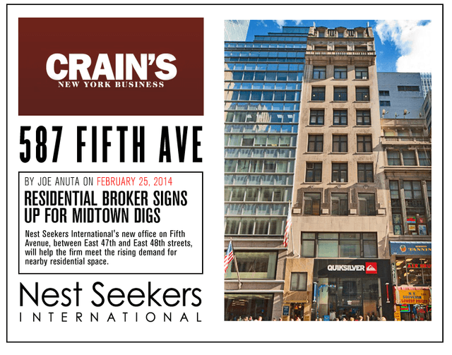 RESIDENTIAL BROKER SIGNS UP FOR MIDTOWN DIGS / NEST SEEKERS INTERNATIONAL'S NEW OFFICE ON FIFTH AVENUE, BETWEEN EAST 47TH AND EAST 48TH STREETS
