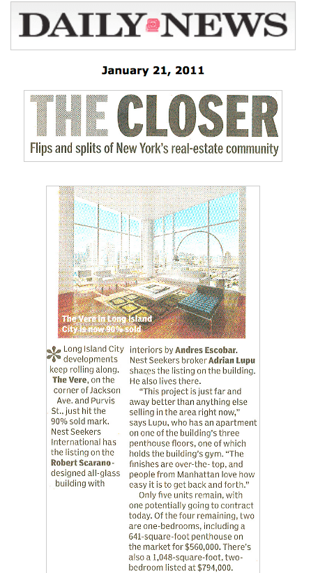 OVER 40% OF AVAILABLE UNITS SOLD AT THE RES. AT 36 GRAMERCY PARK EAST