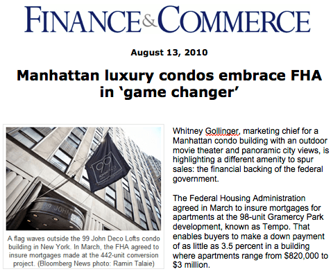 MANHATTAN LUXURY CONDOS TRY FHA BACKING IN "GAME CHANGER"