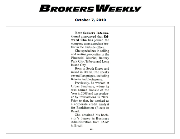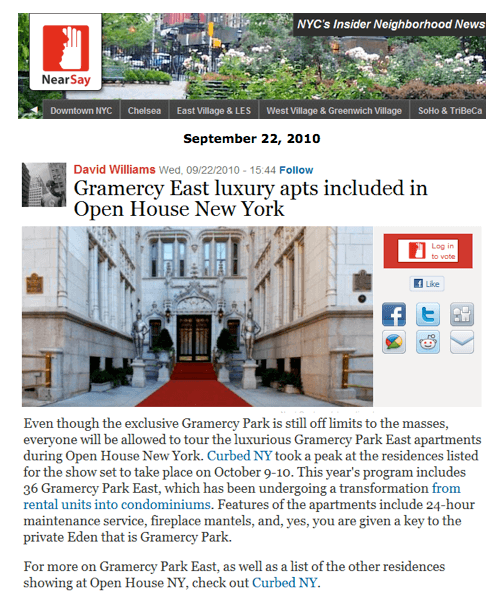 NESTSEEKERS SCORES GRAMERCY PARK BUILDING