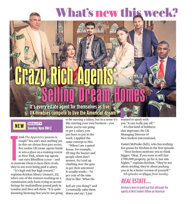 PICK OF THE WEEK: CRAZY RICH AGENTS: SELLING DREAM HOMES 9PM, BBC TWO