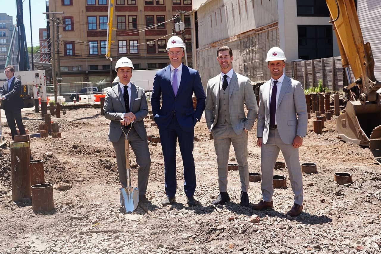 The development and marketing team joined Jersey City Mayor Steven Fulop to commemorate the groundbreaking. Image courtesy of Nest Seekers International.