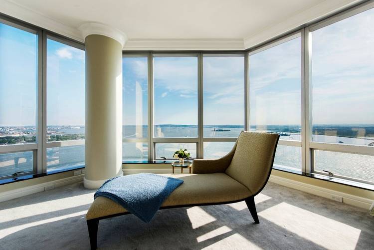 Comprising the top two floors of the building in Battery Park City, the units can be combined into a duplex of about 15,434 square feet, plus terraces totaling 2,193 square feet, according to listing agent Ryan Serhant of Nest Seekers International. From a 40th floor terrace, the Statue of Liberty and Governors Island are clearly visible, with ferries gliding past and the Verrazano-Narrows Bridge in the background. The homes aren't available for individual purchase.