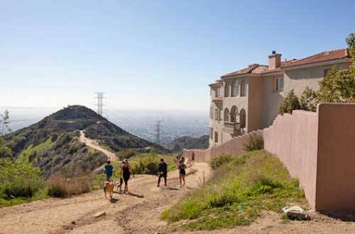 The Solar Drive pink elephant house, aka the Wedding Cake, aka the Runyon Canyon Clubhouse, has been nothing but trouble since it first came into the world in the mid-nineties, and now its new owners think there should be three more just like it on the edge of Runyon Canyon. The house's first owners divorced and left it abandoned and unfinished; later owners got caught up in all kinds of legal trouble and bankruptcy; eventually the house became "a drug den, a crime magnet, and a fire trap," as one neighbor put it. And meanwhile hikers have innocently traipsed past on what seems like a lovely Runyon Canyon trail, but is actually private property. The house sold in late 2011, apparently to an Aliso Viejo private equity firm called Fort Ashford Funds, for $500,000 (as part of a multi-property sale, according to Redfin), and now the new owners have gated that heavily-used trail and filed plans to prep the property for more megamansions.